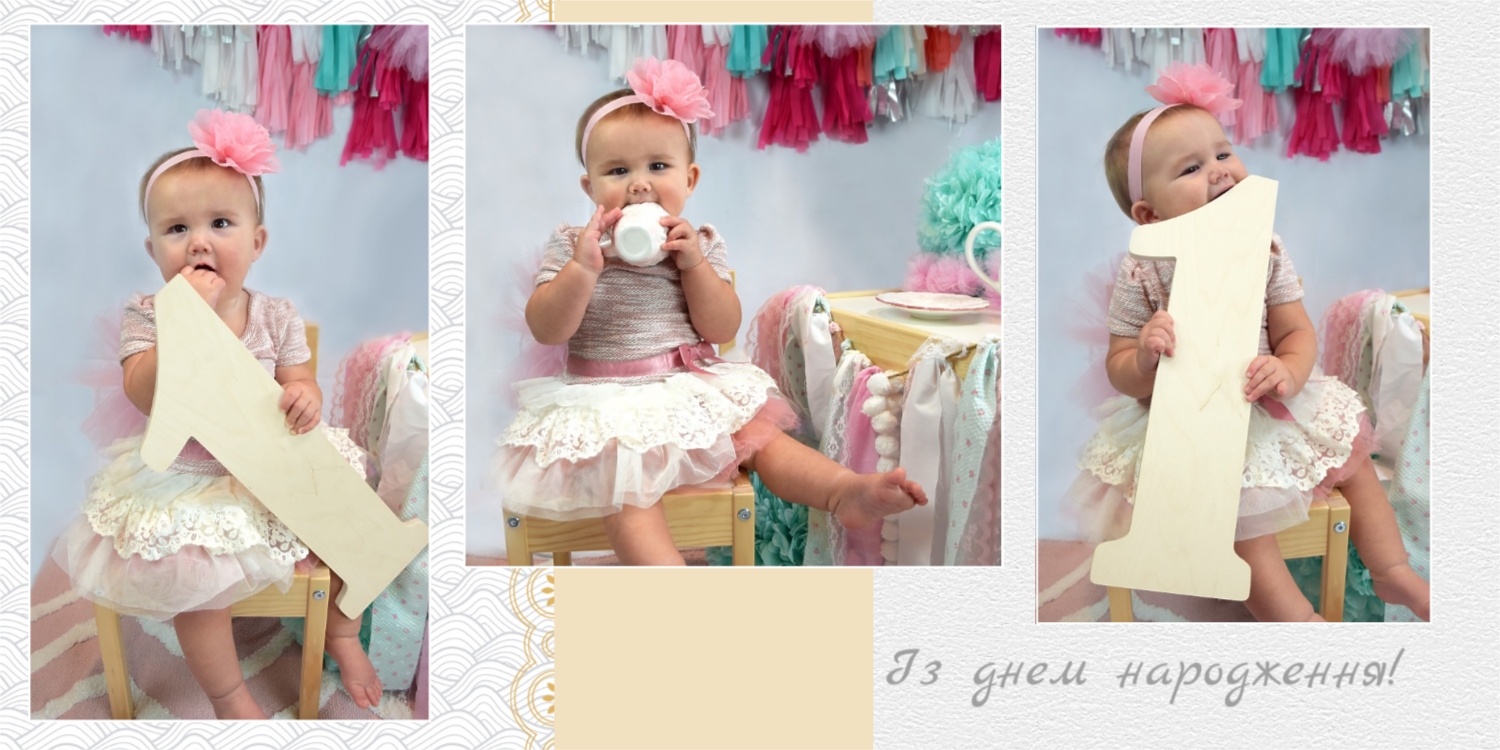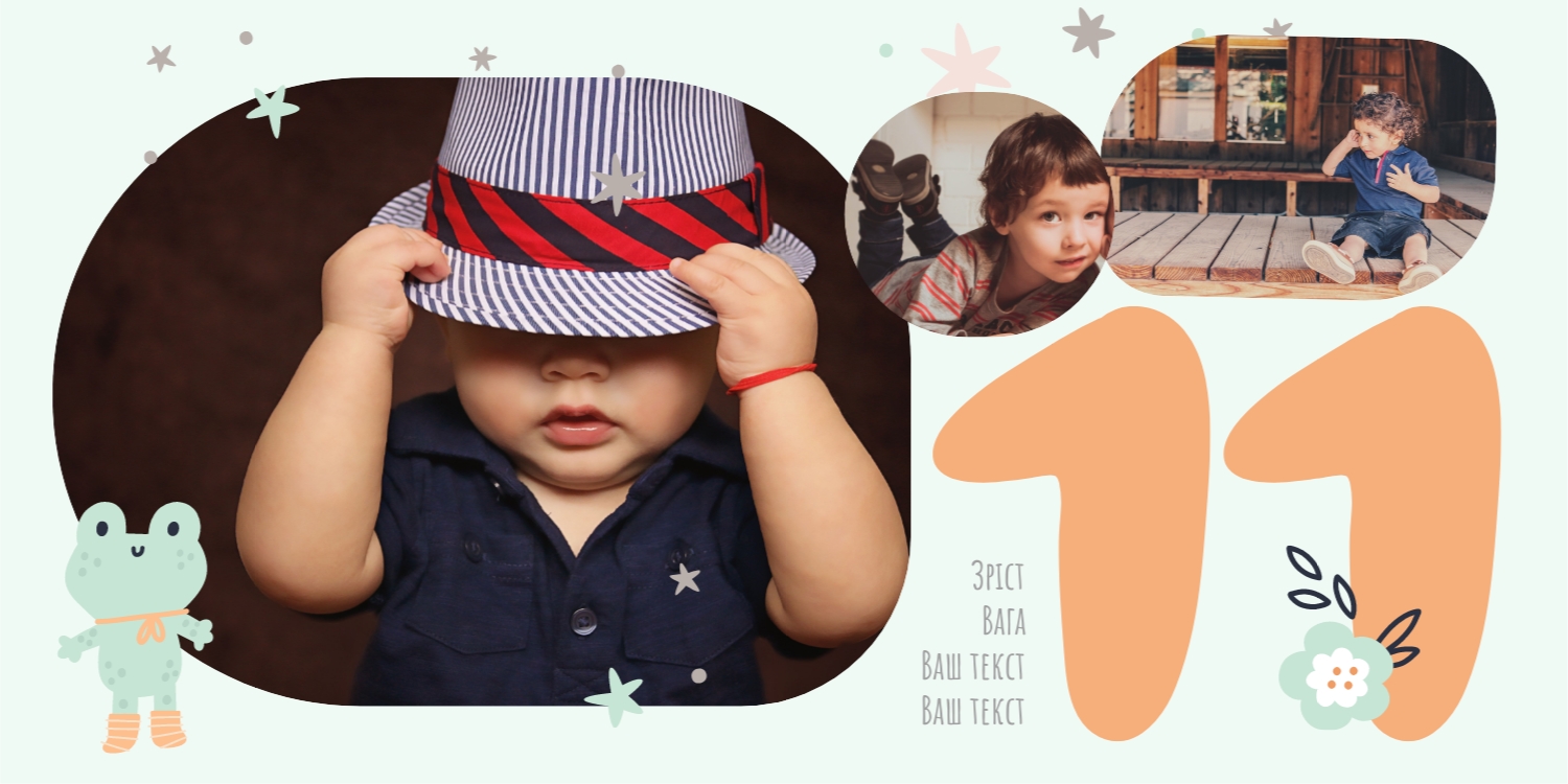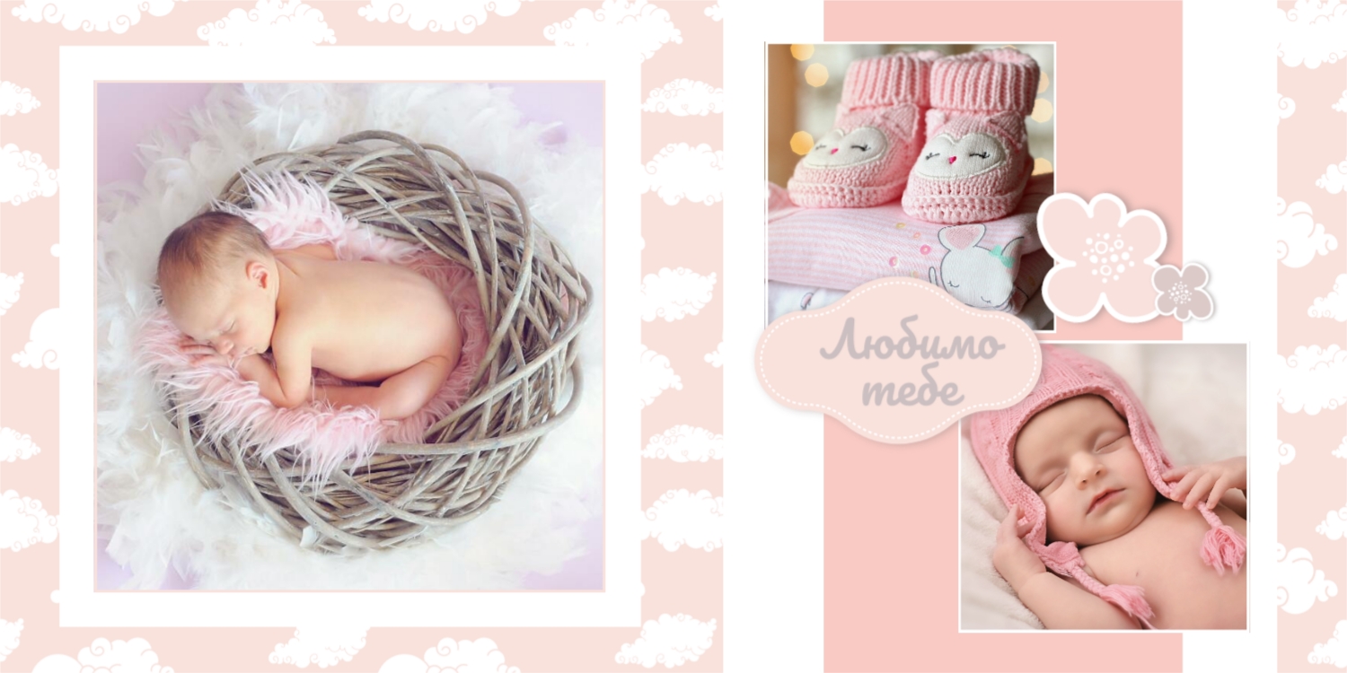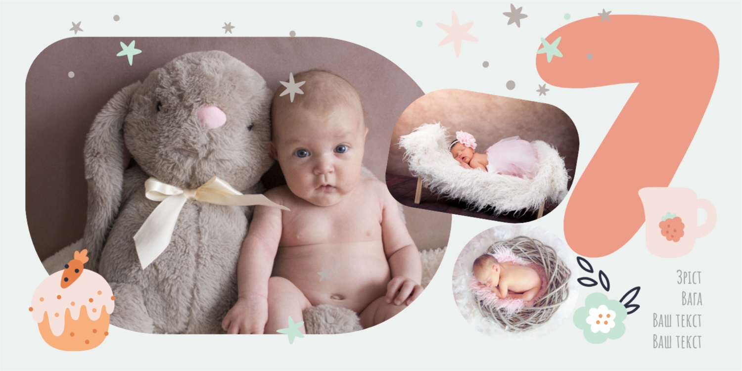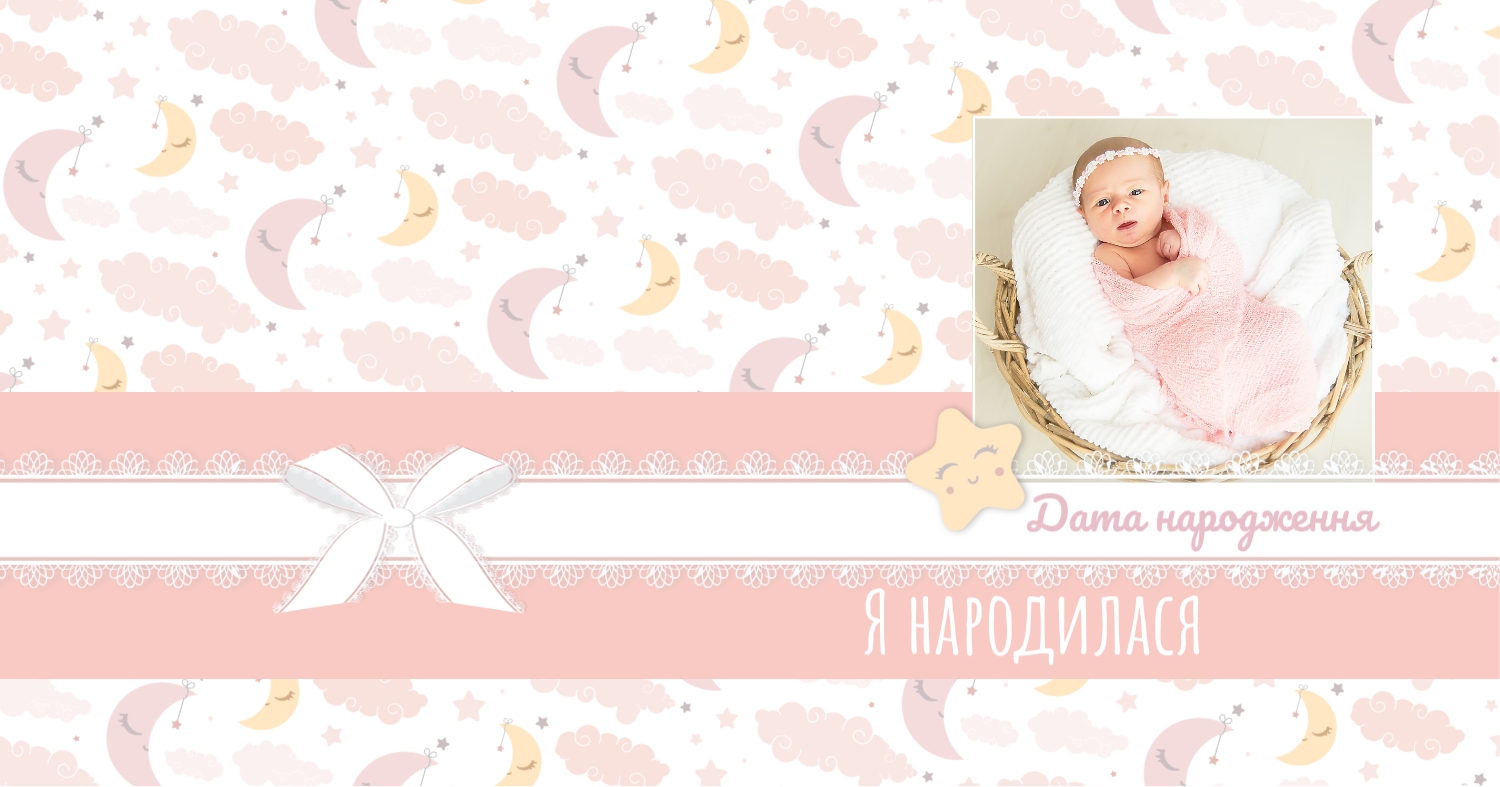 Безкоштовний шаблон дитячої фотокниги від народження до року. Створіть макет власноруч в онлайн-конструкторі фотокниг.