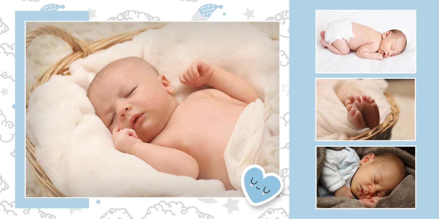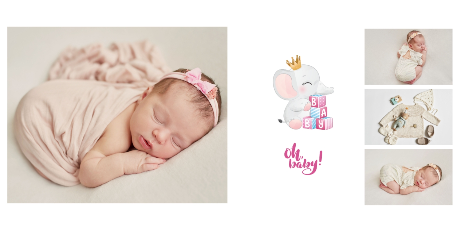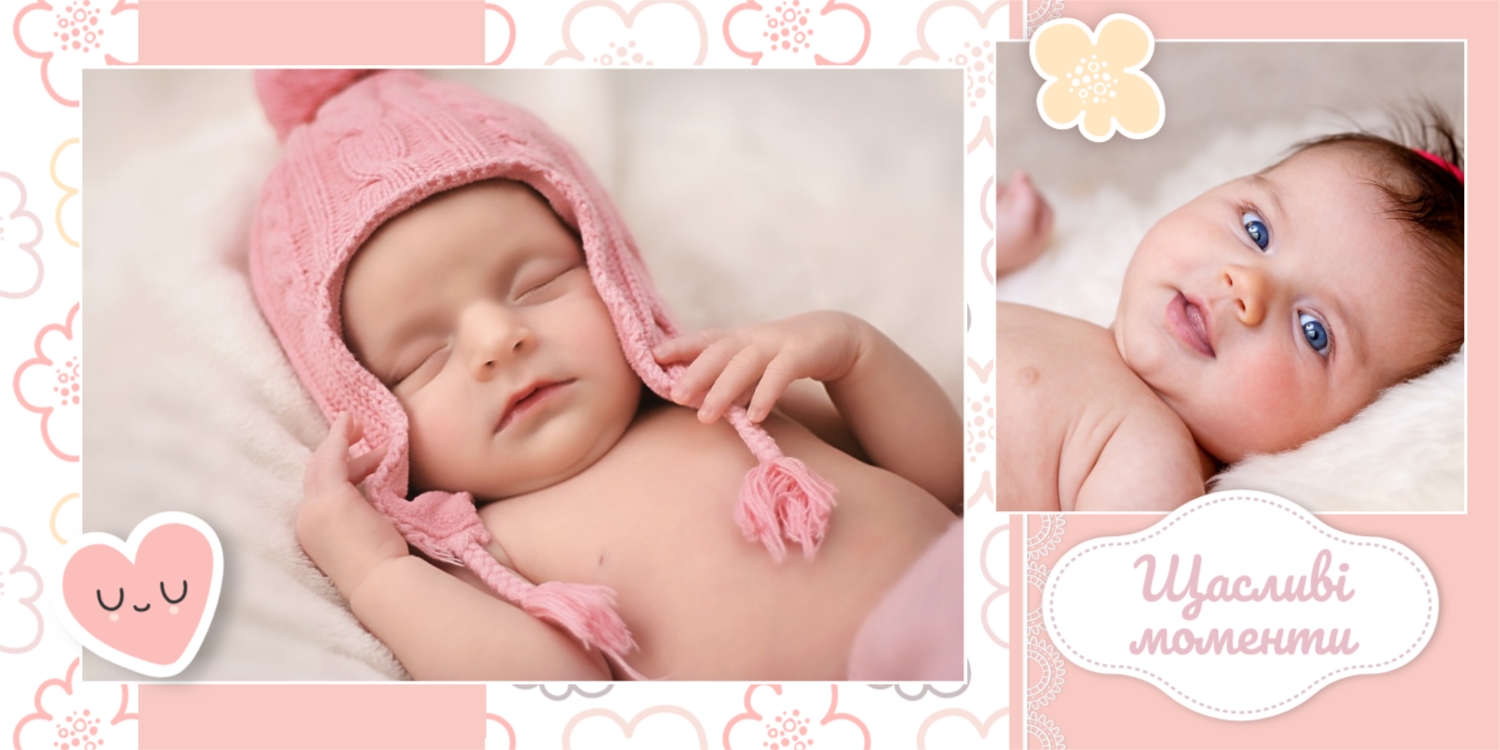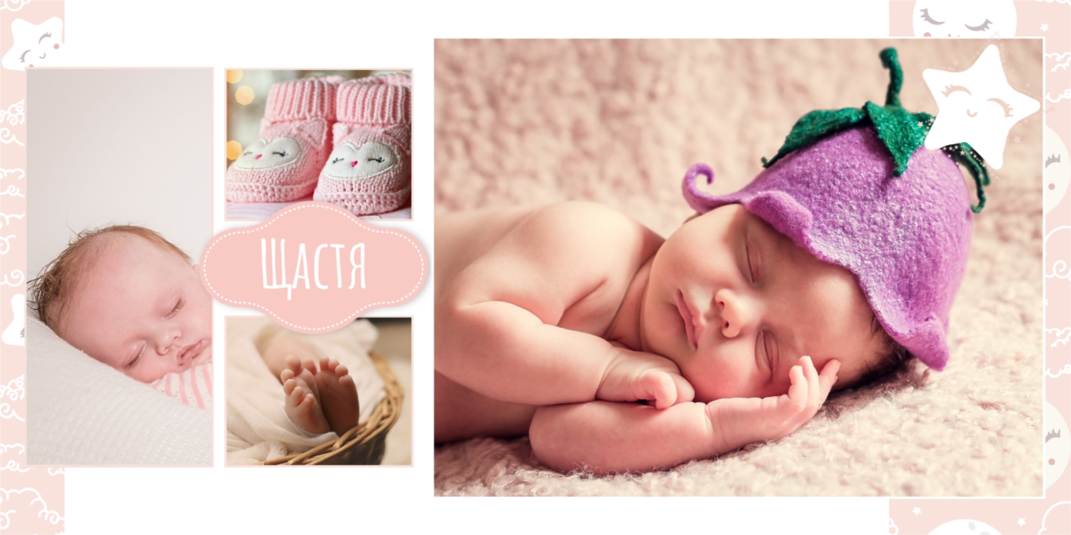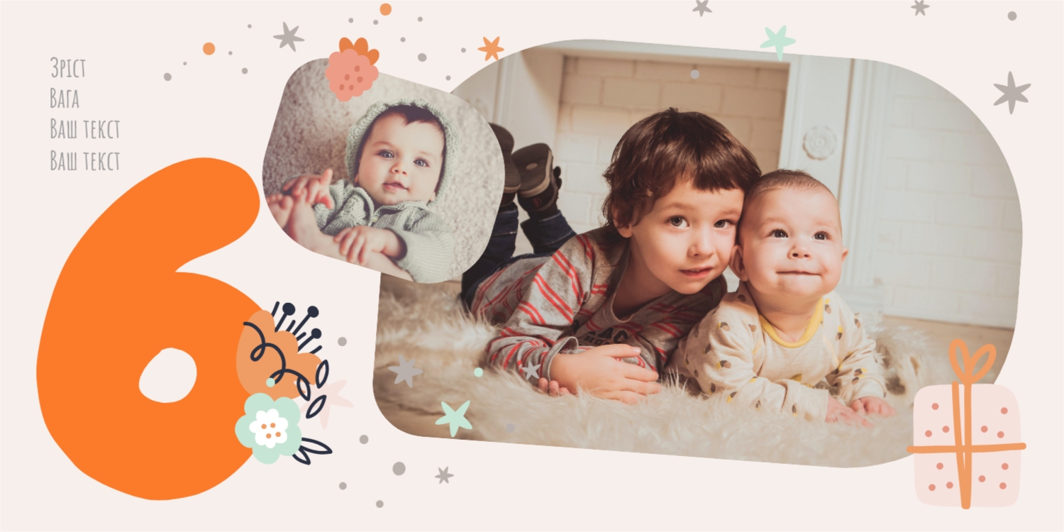 Безкоштовний шаблон дитячої фотокниги від народження до року. Створіть макет власноруч в онлайн-конструкторі фотокниг.