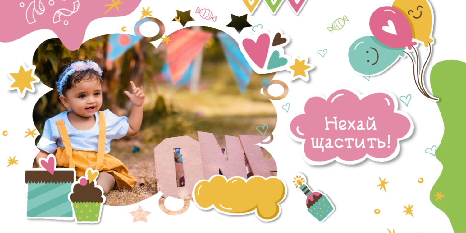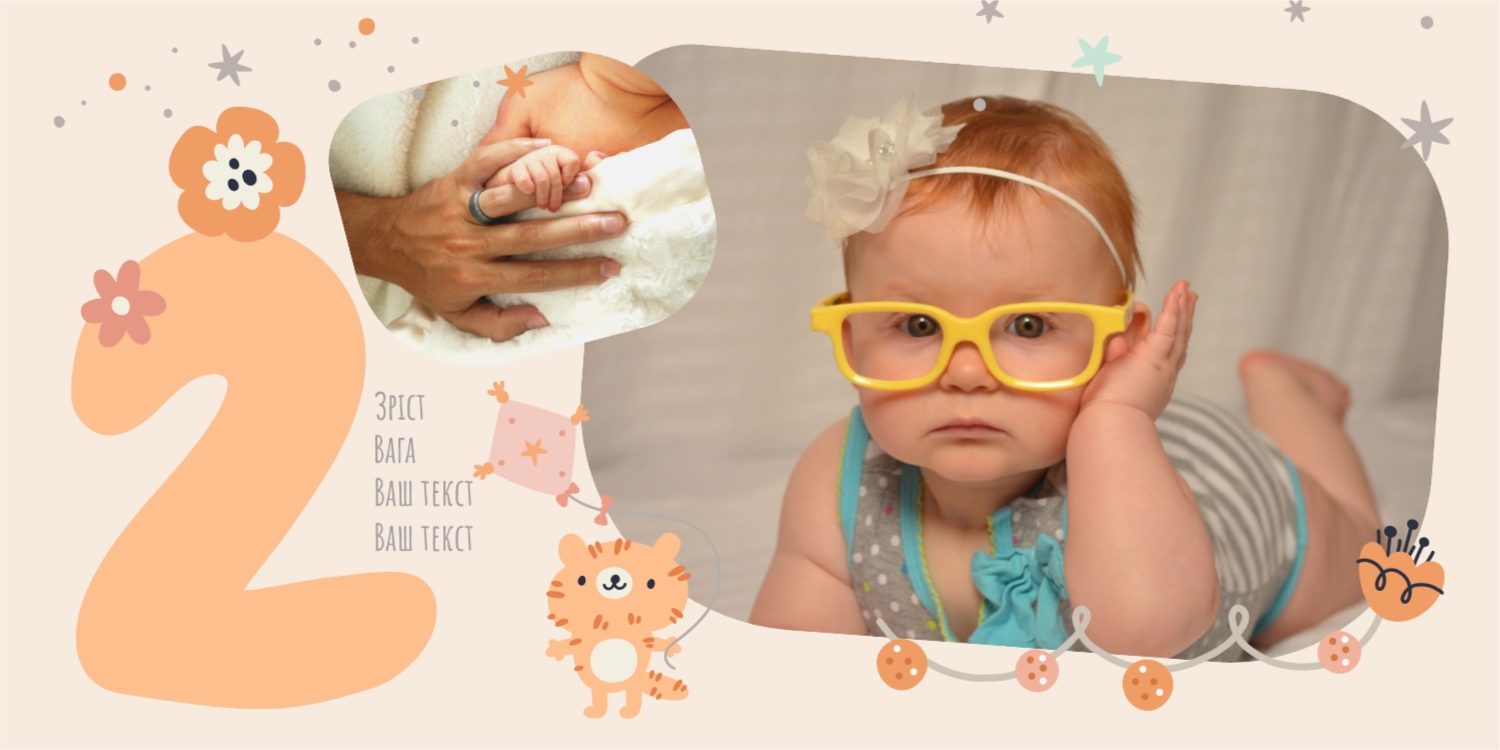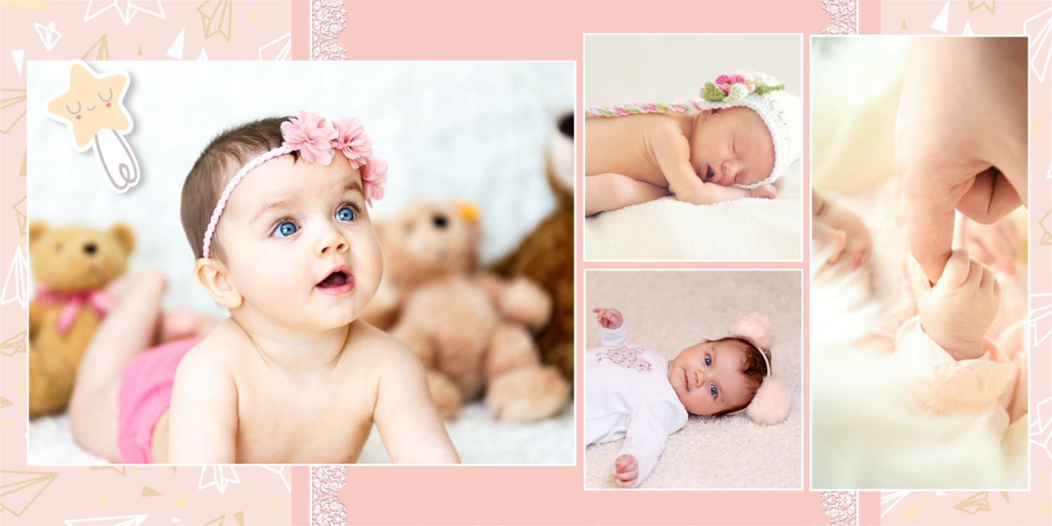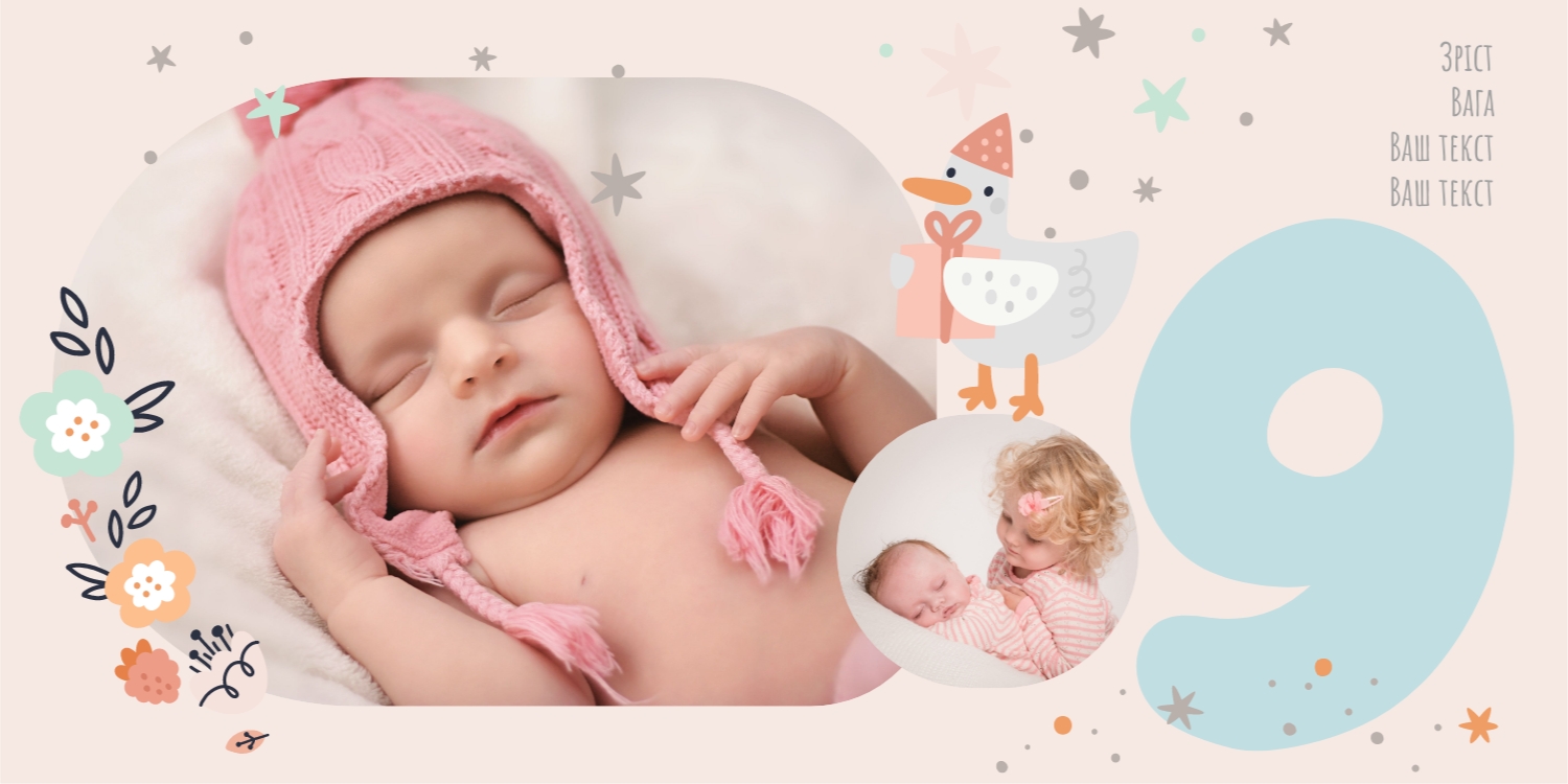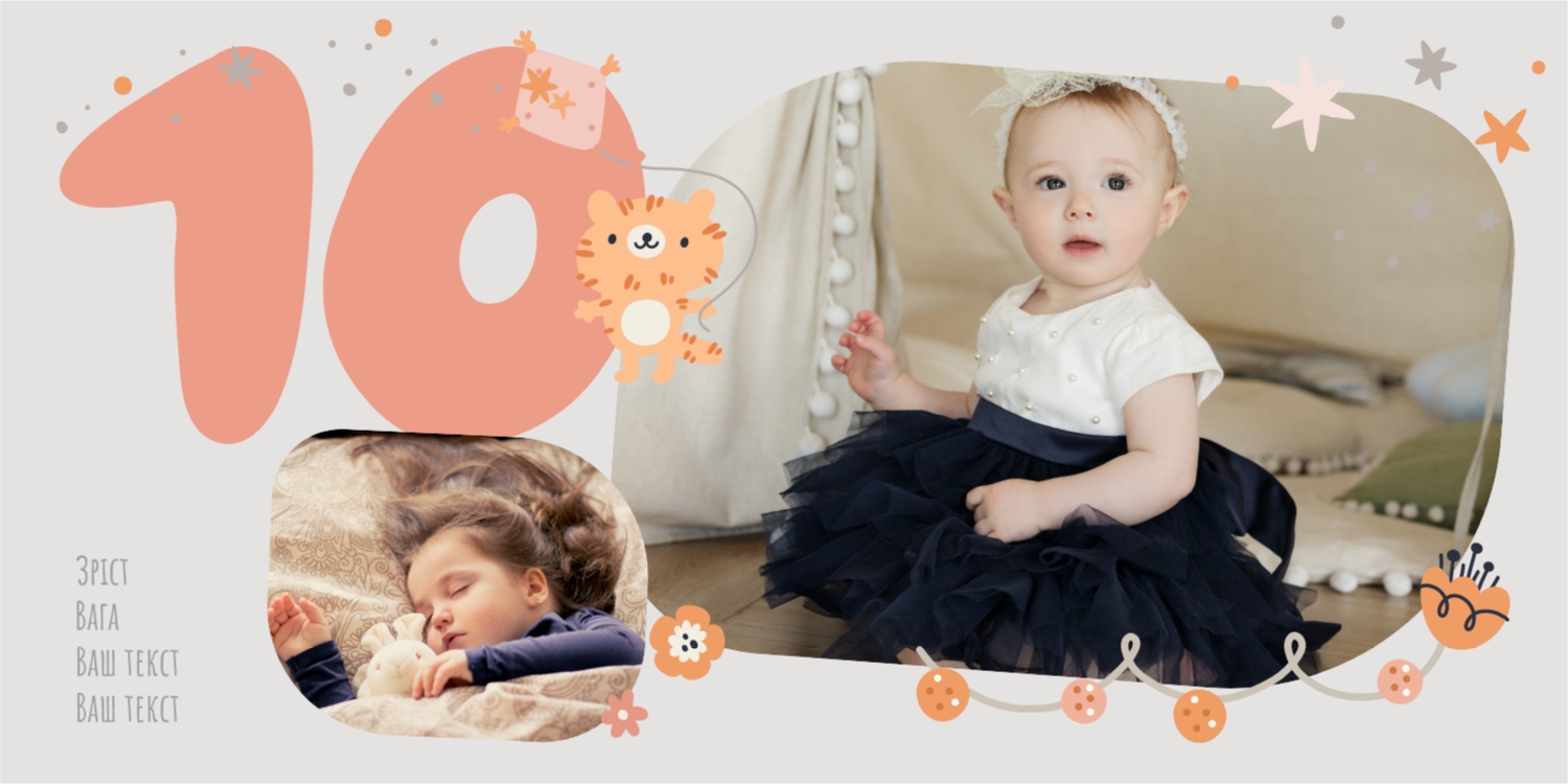 Безкоштовний шаблон дитячої фотокниги від народження до року. Створіть макет власноруч в онлайн-конструкторі фотокниг.
