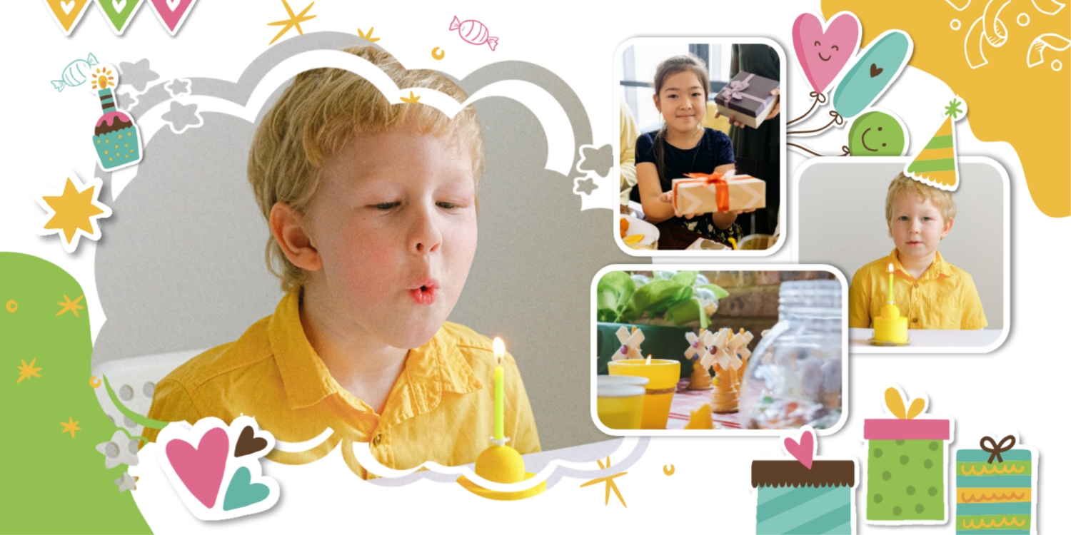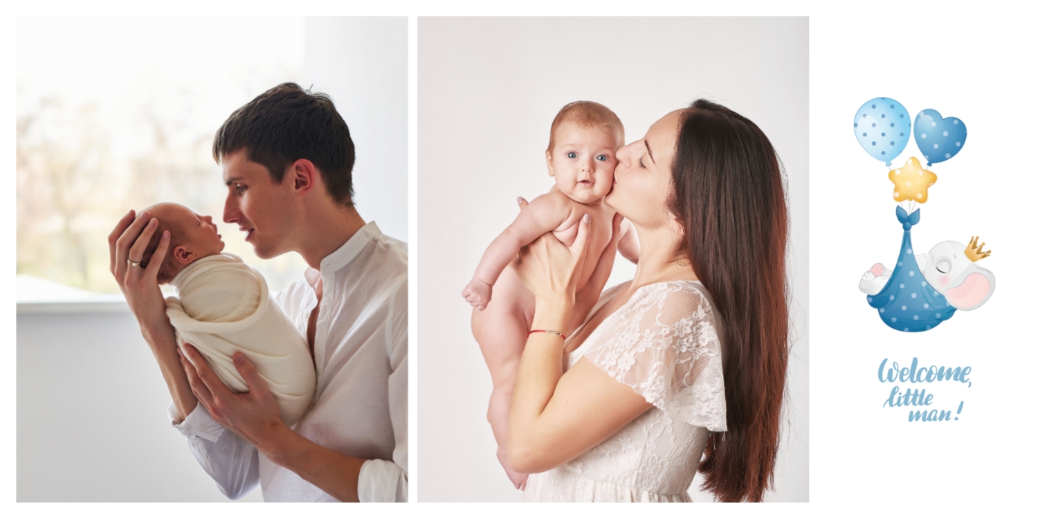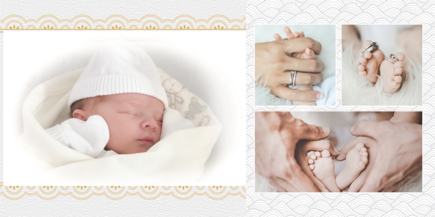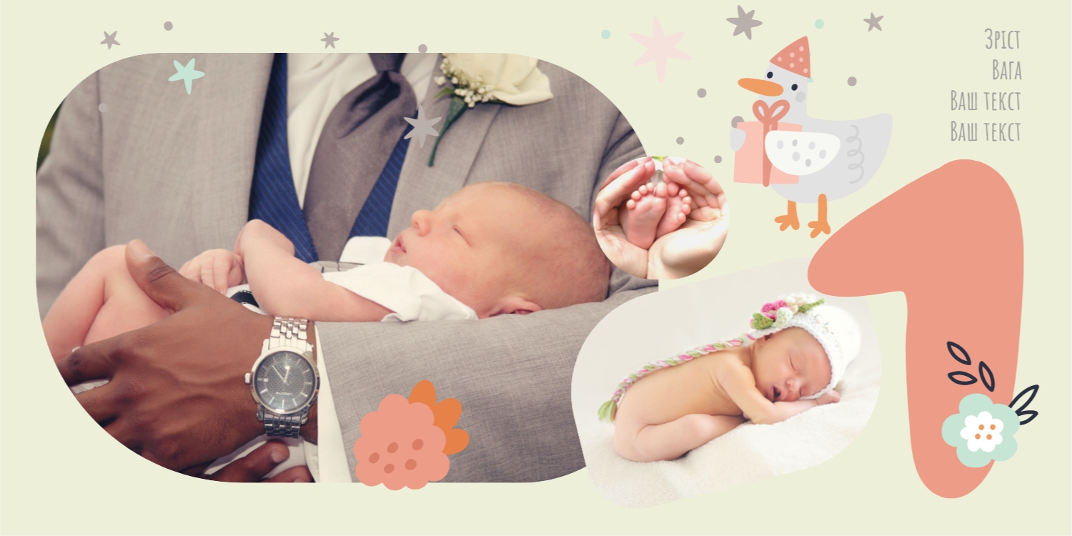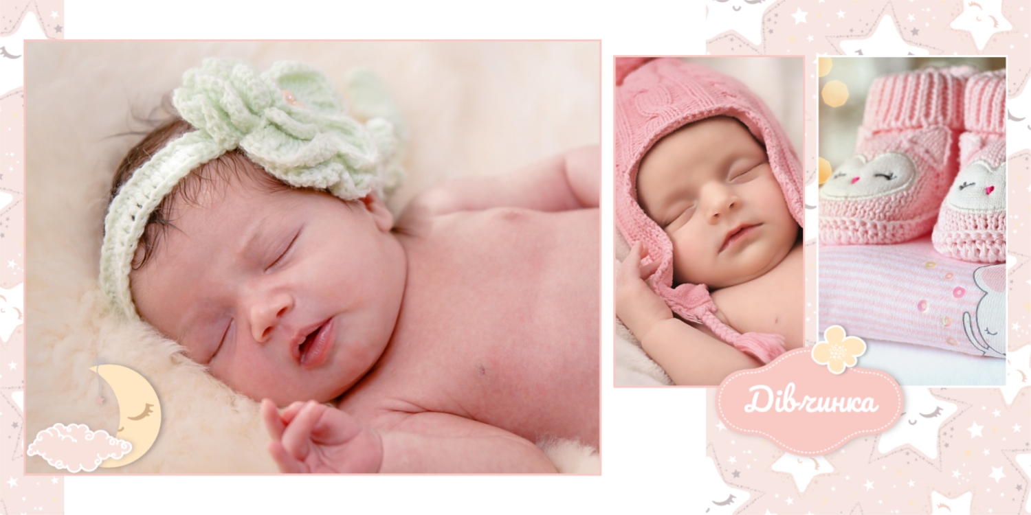Безкоштовний шаблон дитячої фотокниги від народження до року. Створіть макет власноруч в онлайн-конструкторі фотокниг.