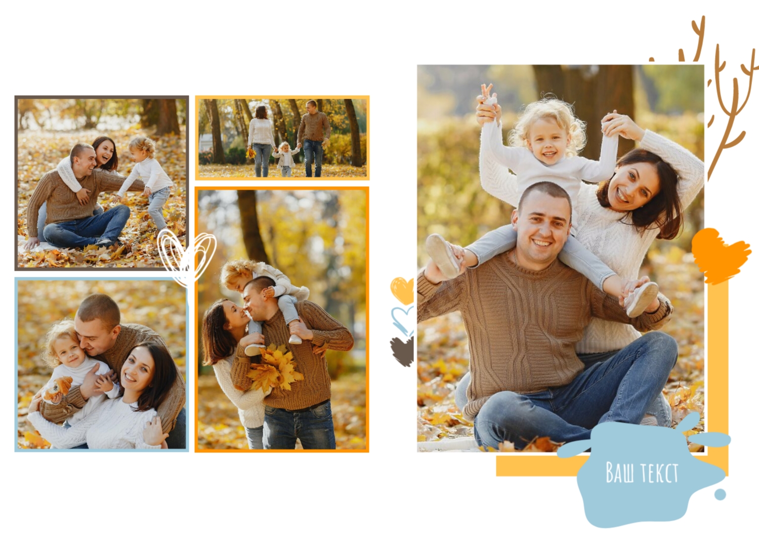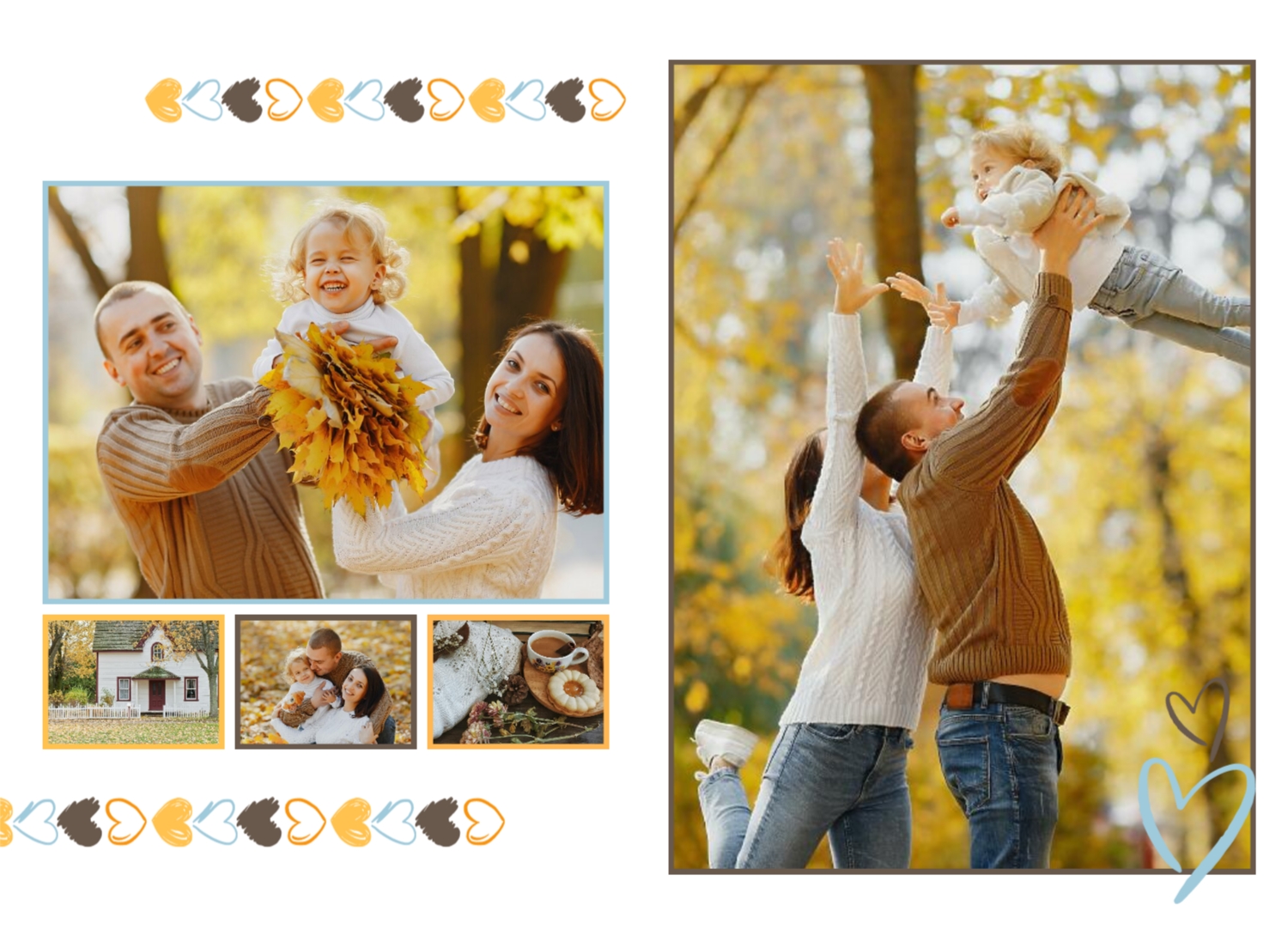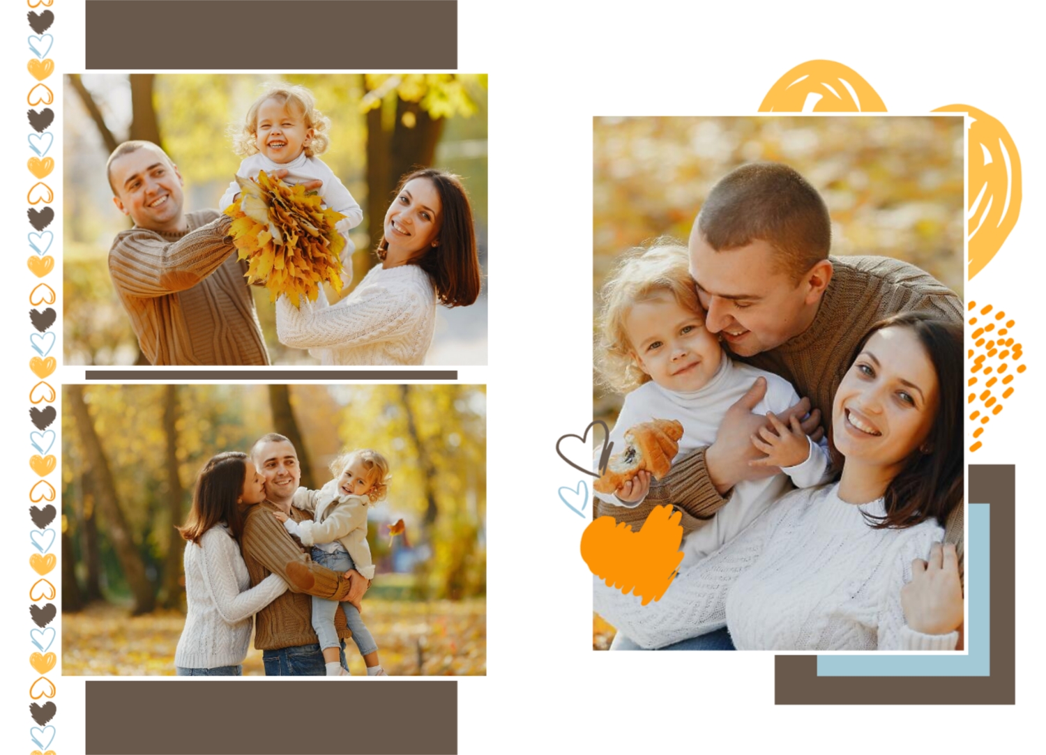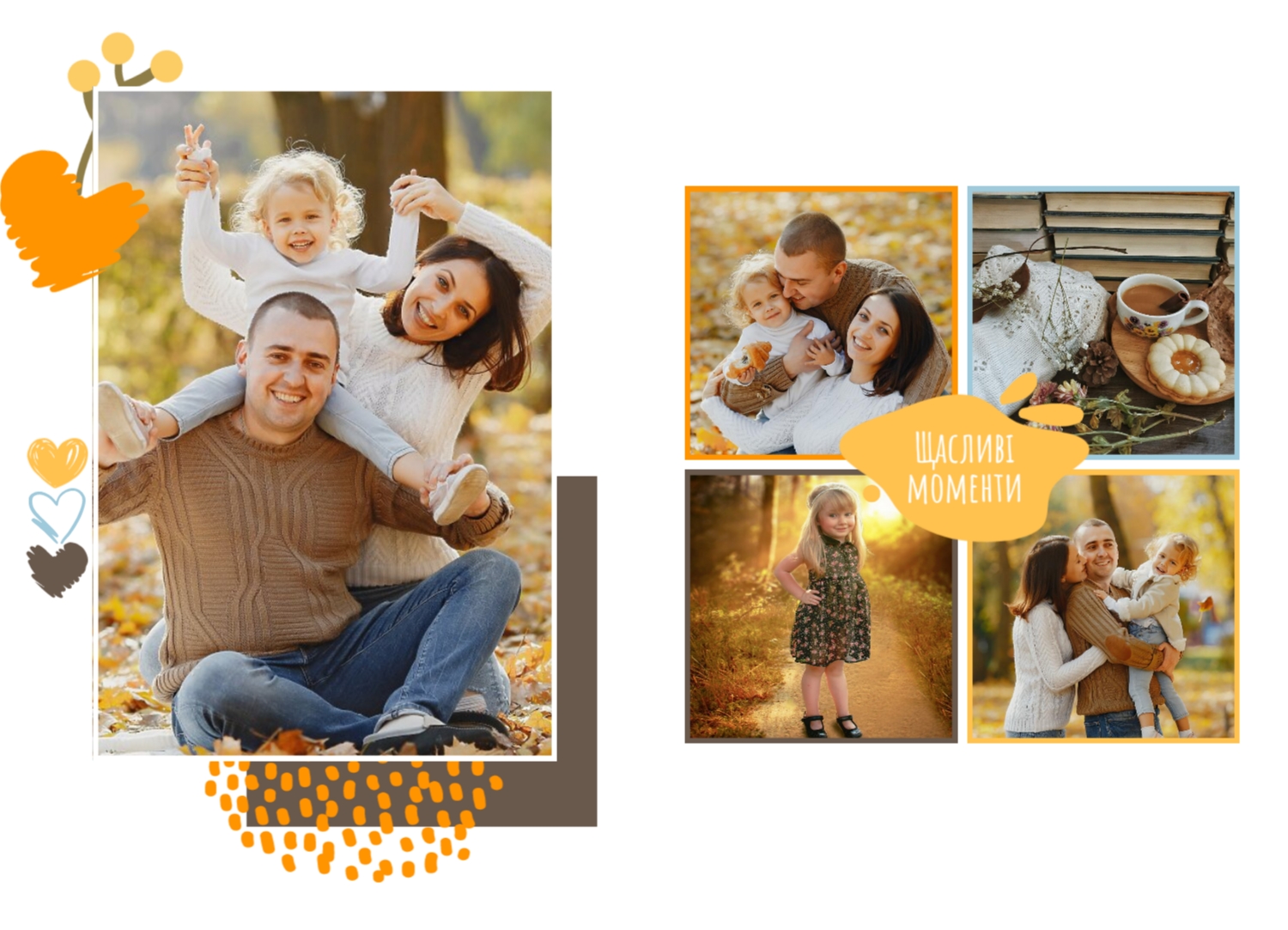 Безкоштовний шаблон сімейної фотокниги з найкращими спогадами. Створіть макет власноруч в онлайн-конструкторі фотокниг.