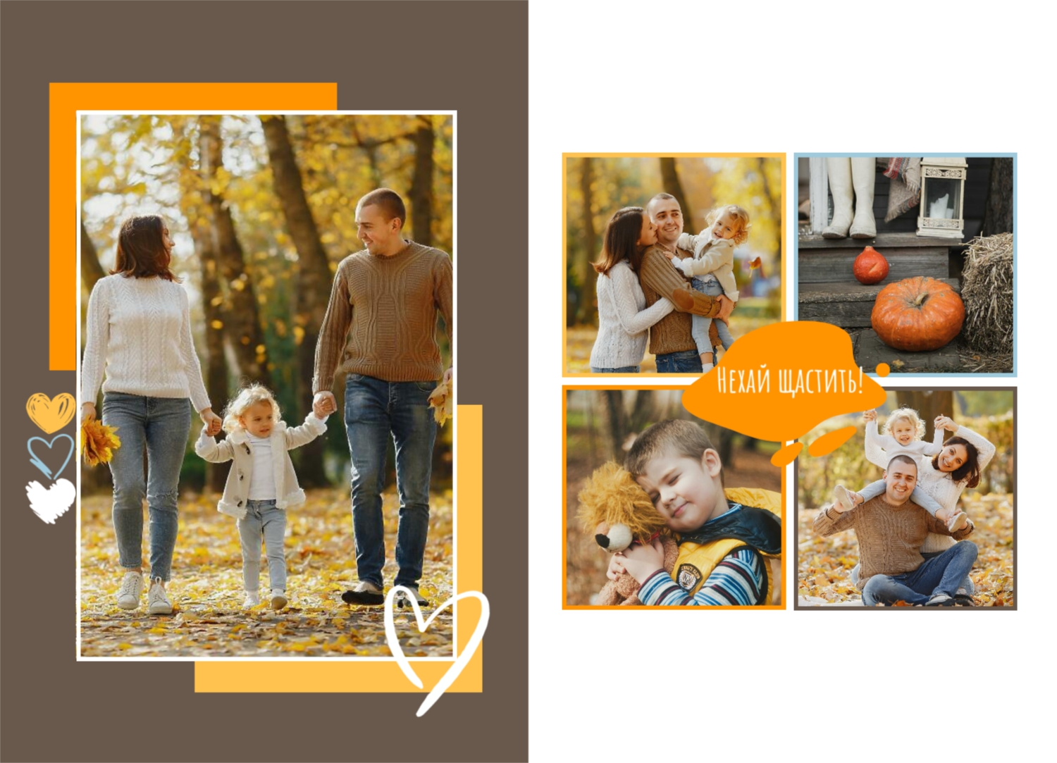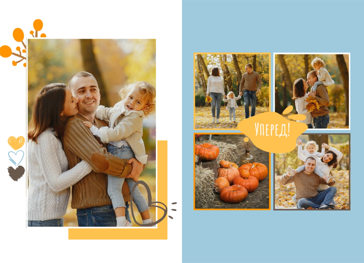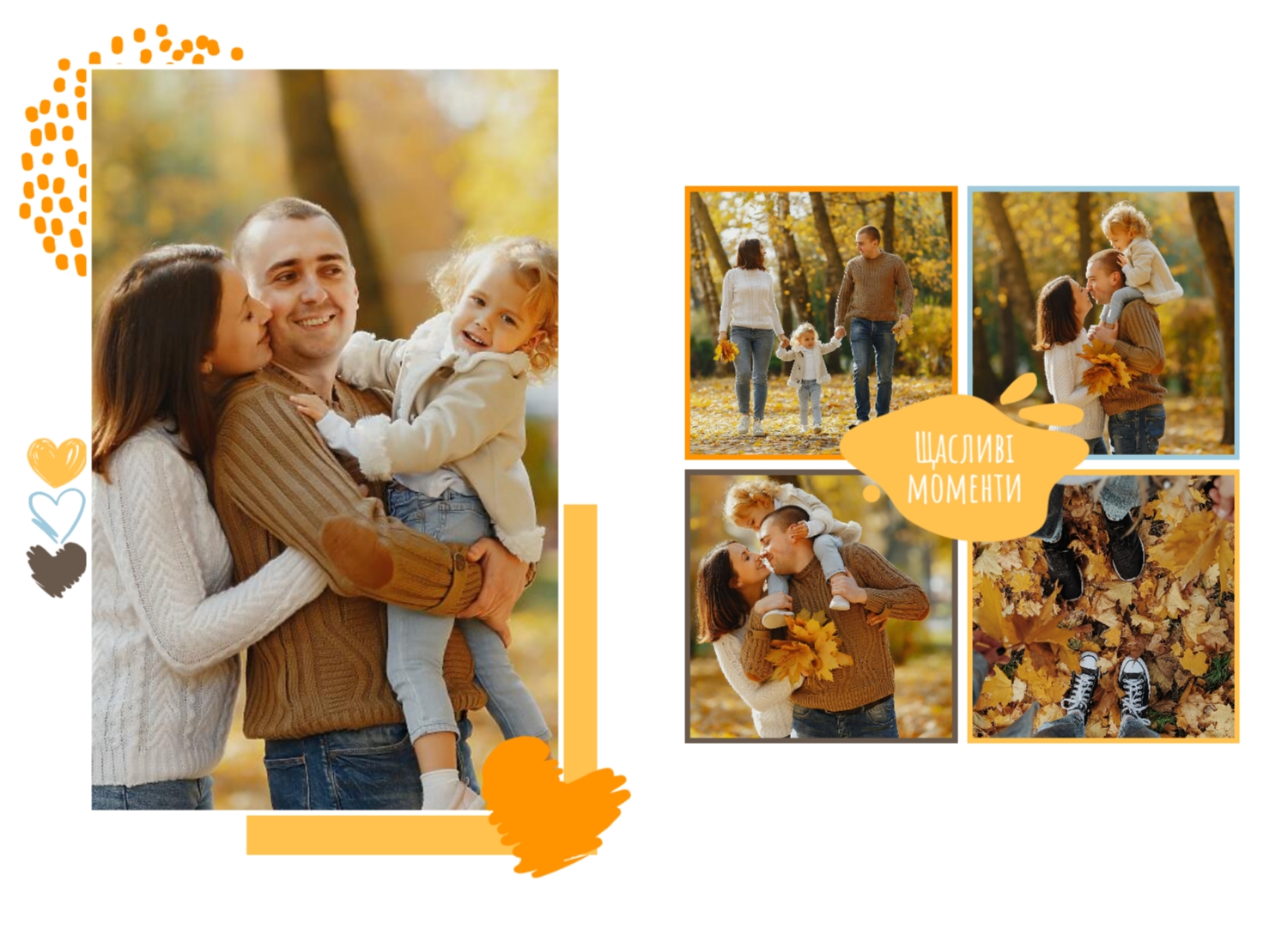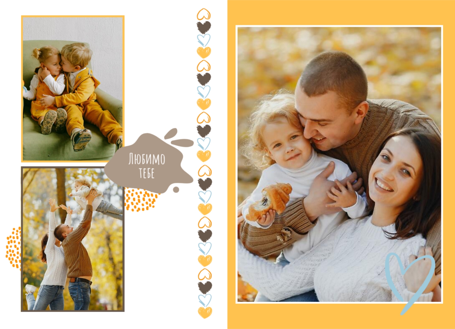 Безкоштовний шаблон сімейної фотокниги з найкращими спогадами. Створіть макет власноруч в онлайн-конструкторі фотокниг.
