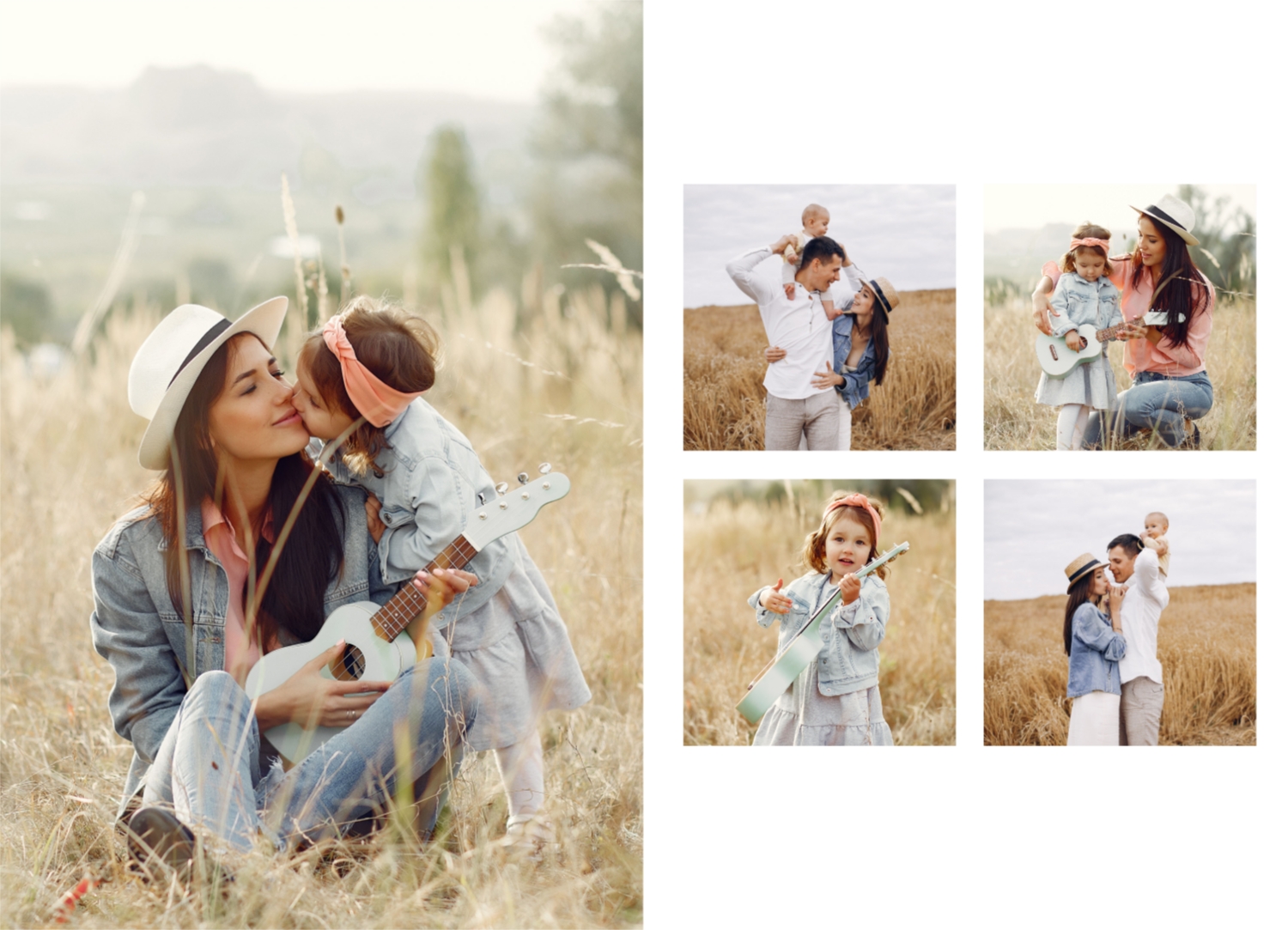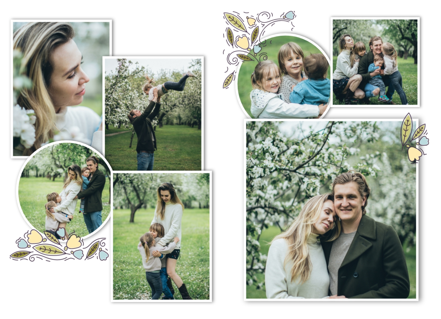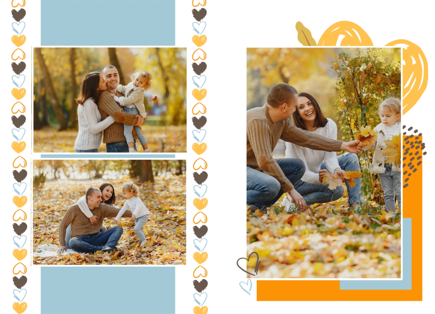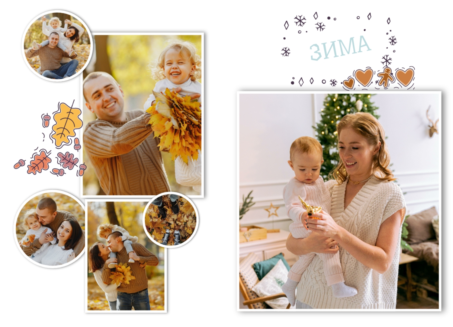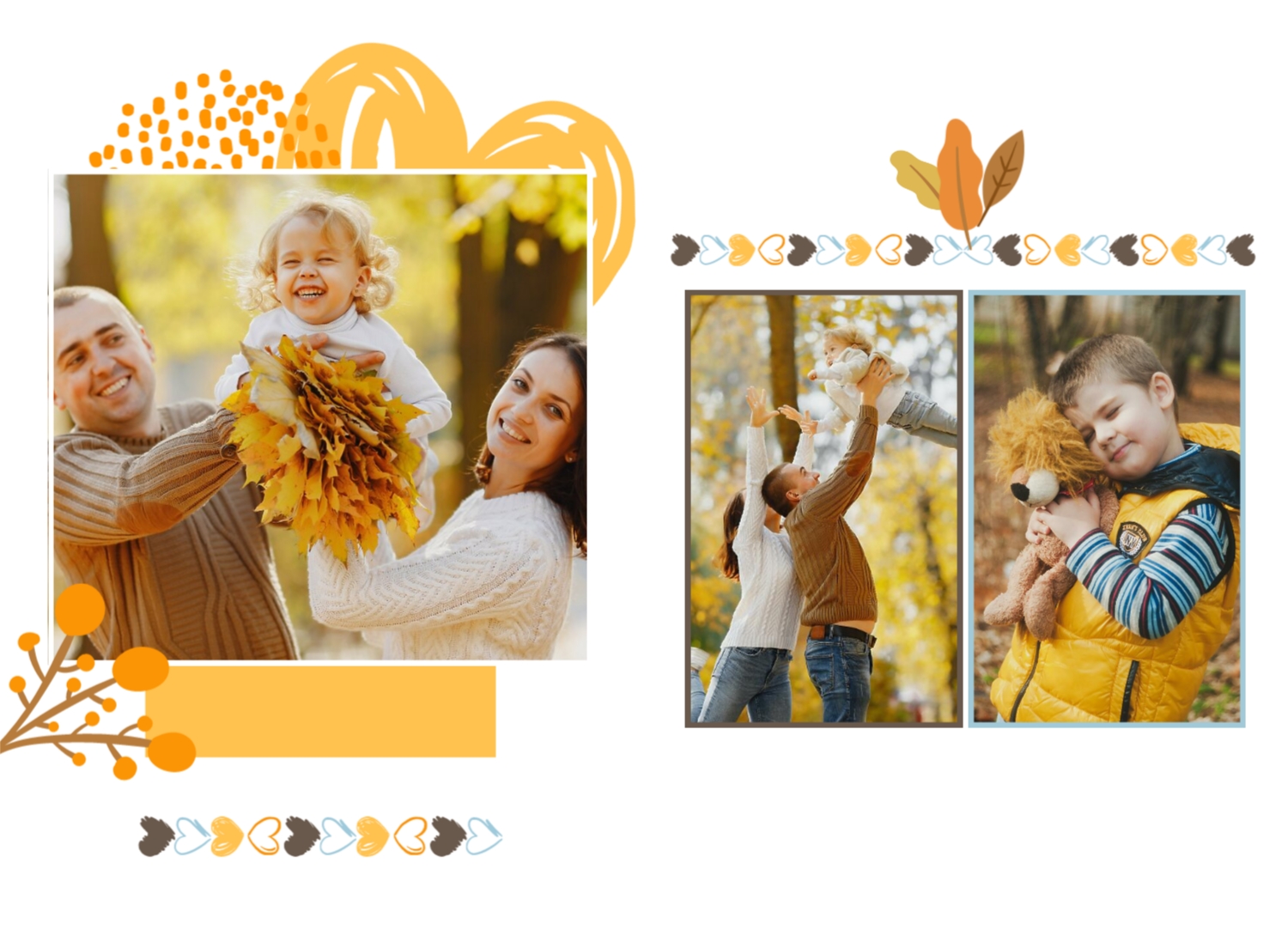 Безкоштовний шаблон сімейної фотокниги з найкращими спогадами. Створіть макет власноруч в онлайн-конструкторі фотокниг.