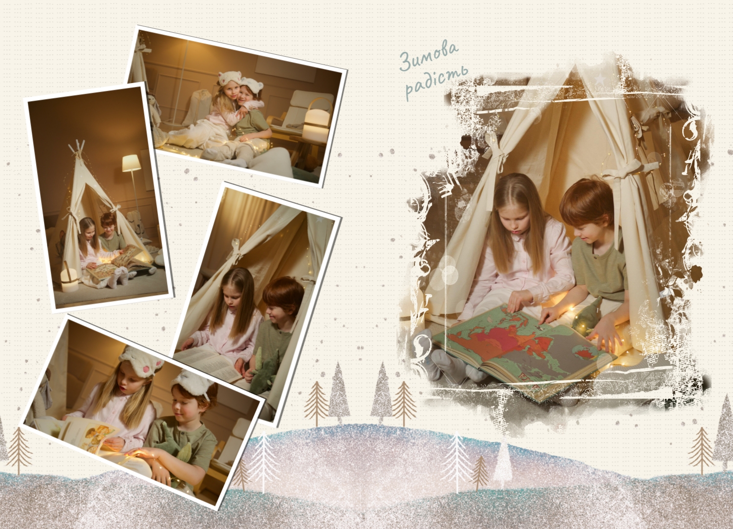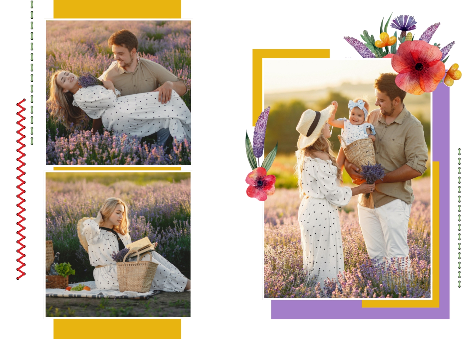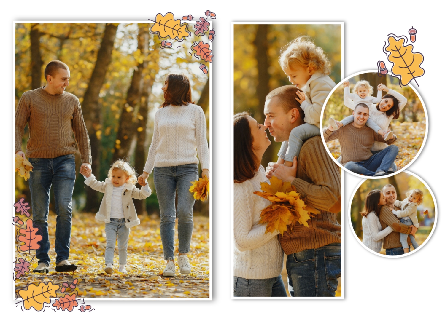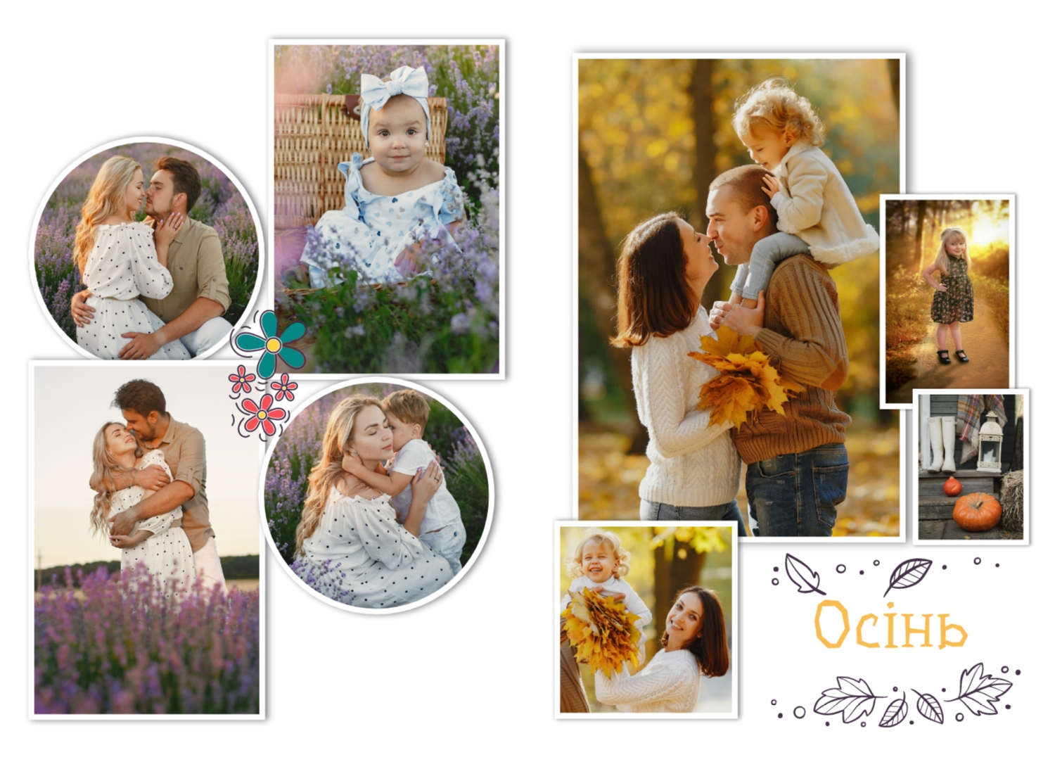 Безкоштовний шаблон сімейної фотокниги з найкращими спогадами. Створіть макет власноруч в онлайн-конструкторі фотокниг.