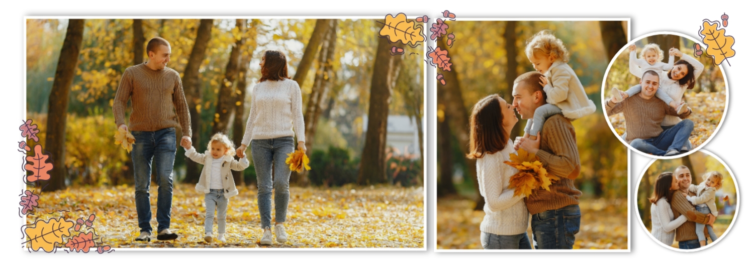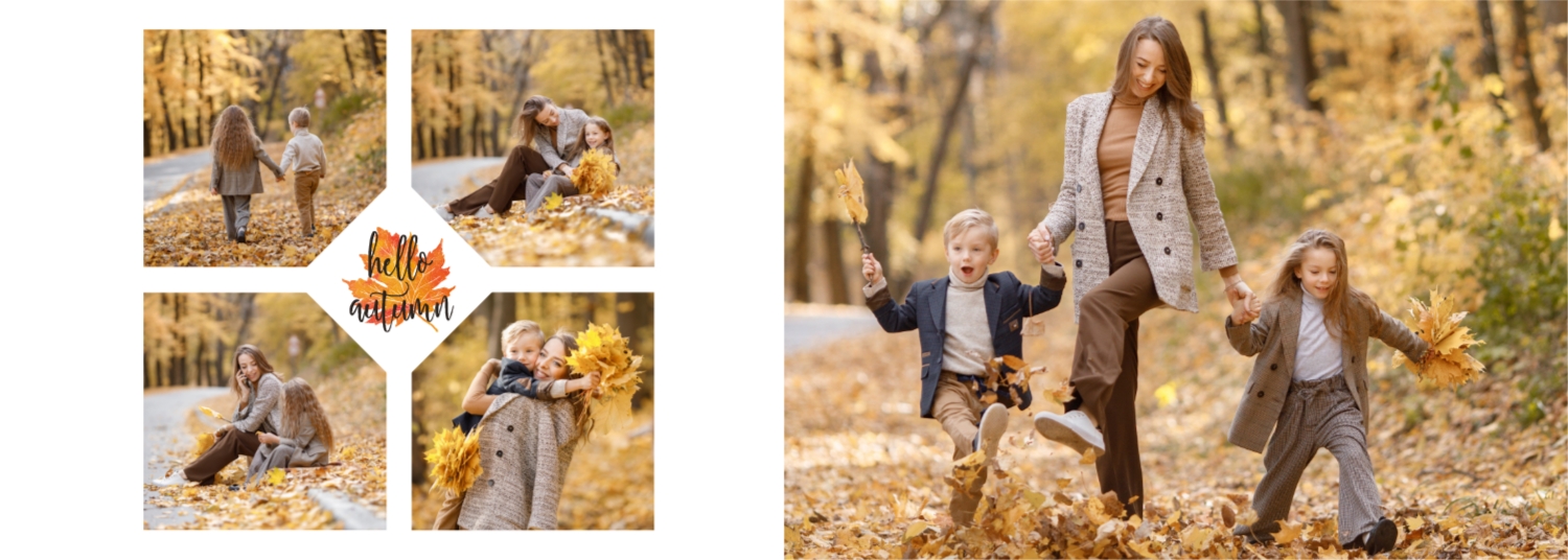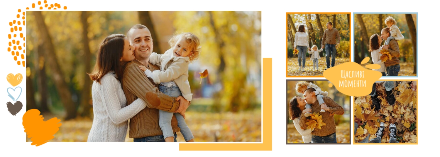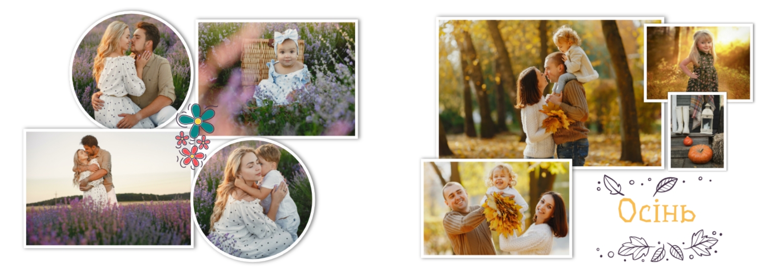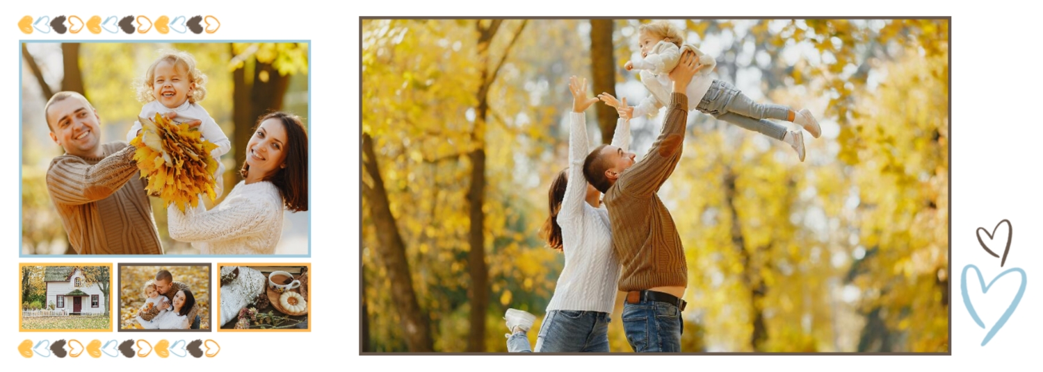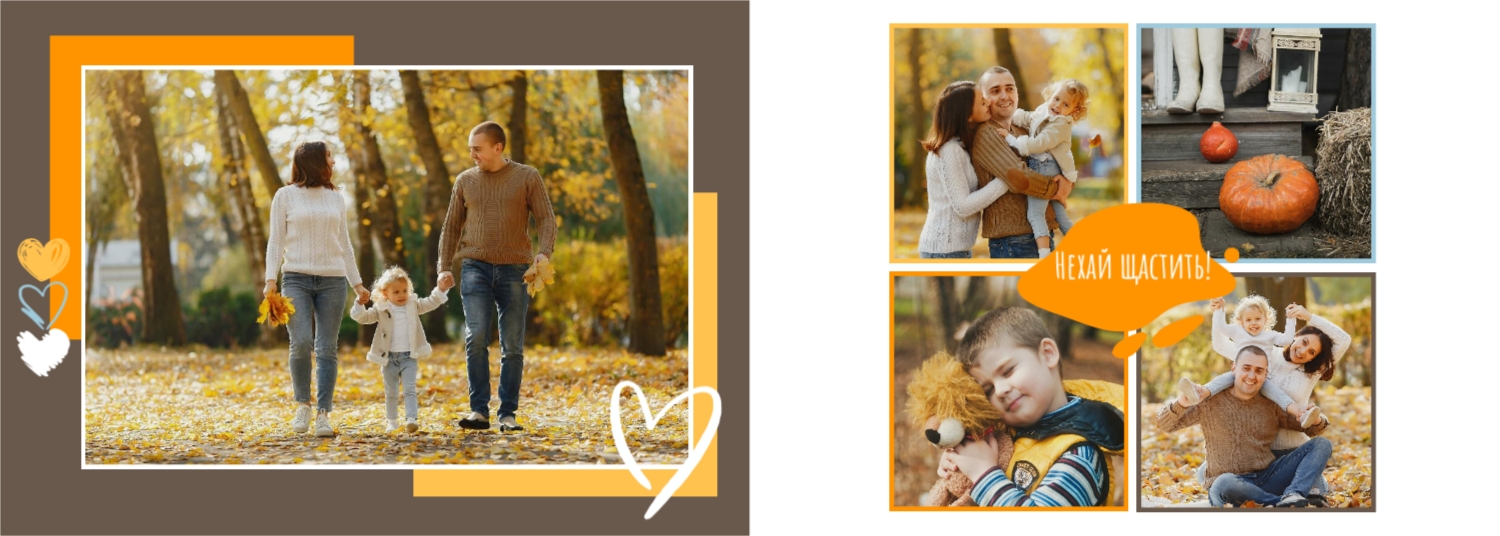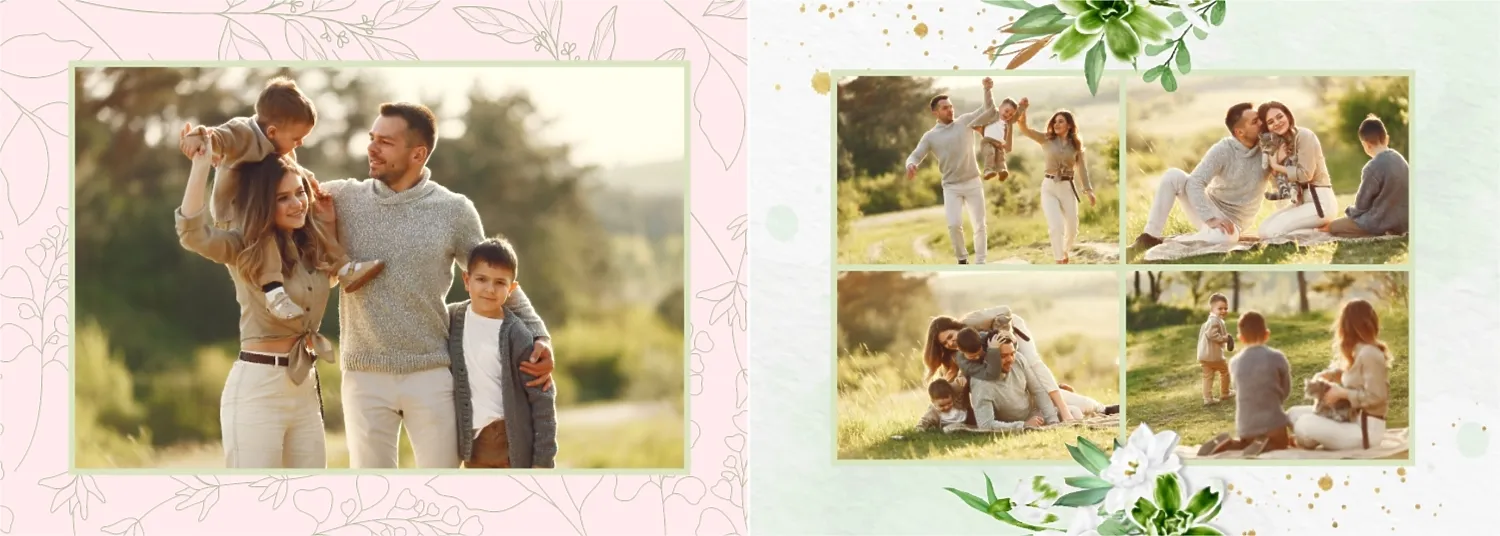 Безкоштовний шаблон сімейної фотокниги з найкращими спогадами. Створіть макет власноруч в онлайн-конструкторі фотокниг.