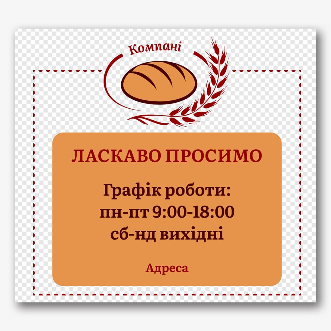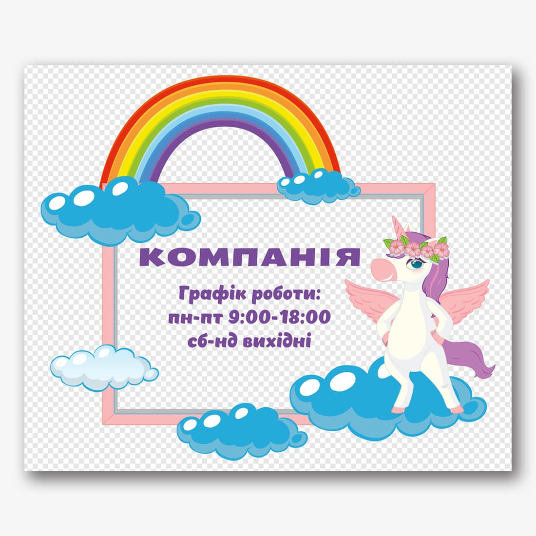 Безкоштовний шаблон прозорої таблички режиму роботи для салону краси. Створіть макет своїми руками в онлайн-конструкторі табличок.