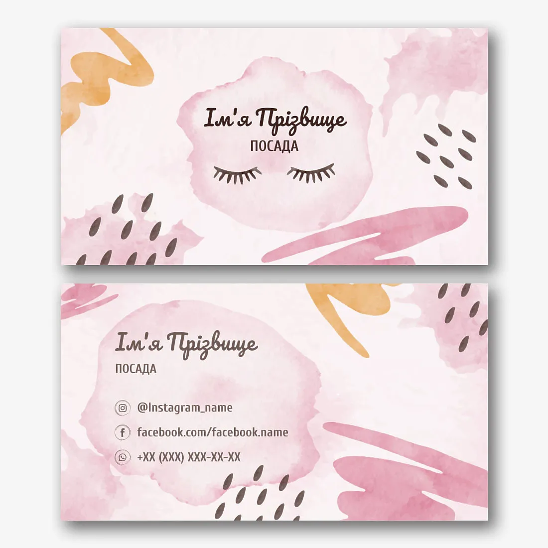 Безкоштовний шаблон візитки для салона краси, візажиста, майстра макіяжу. Створіть макет візитки своїми руками в конструкторі візиток.