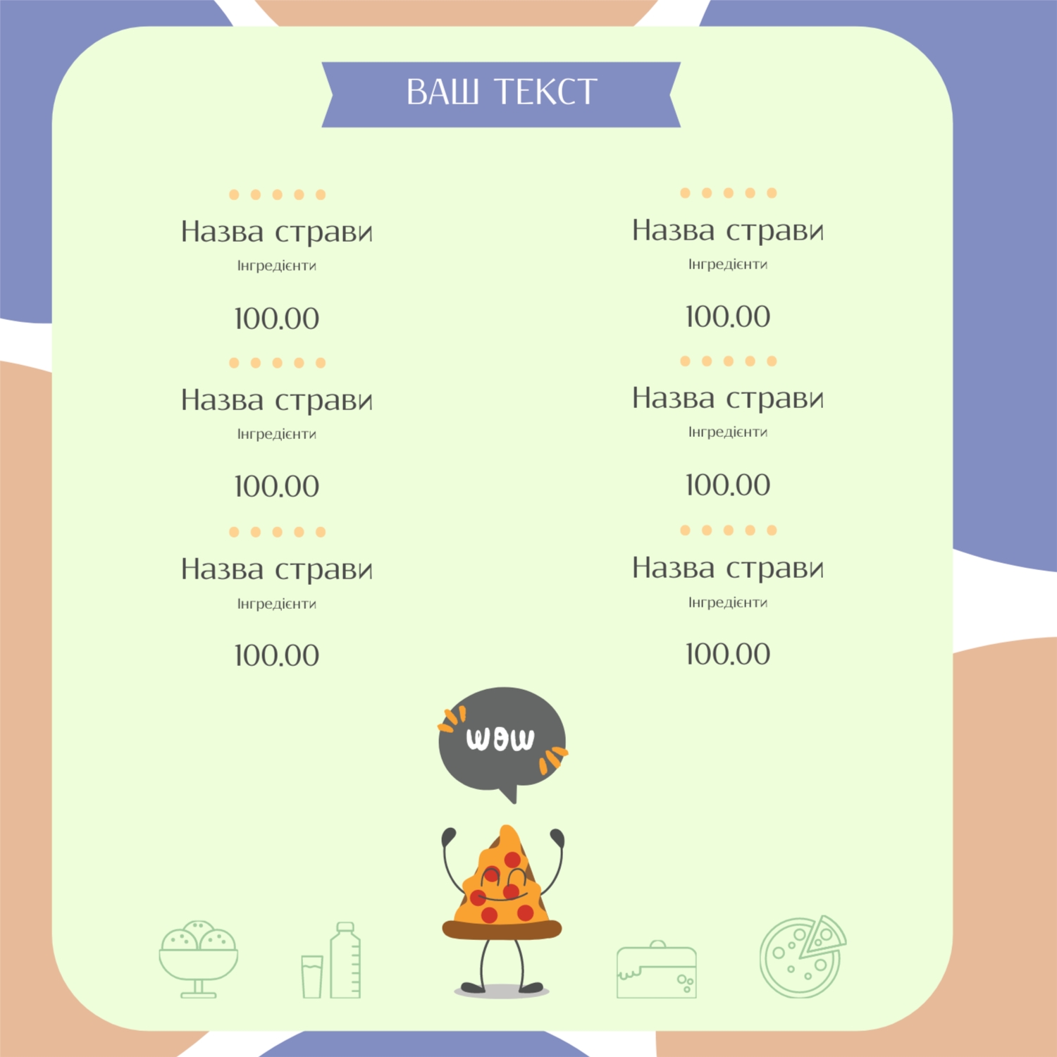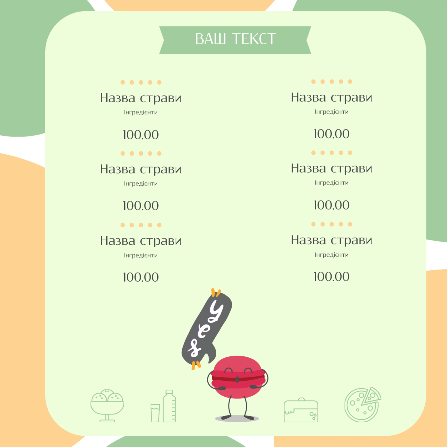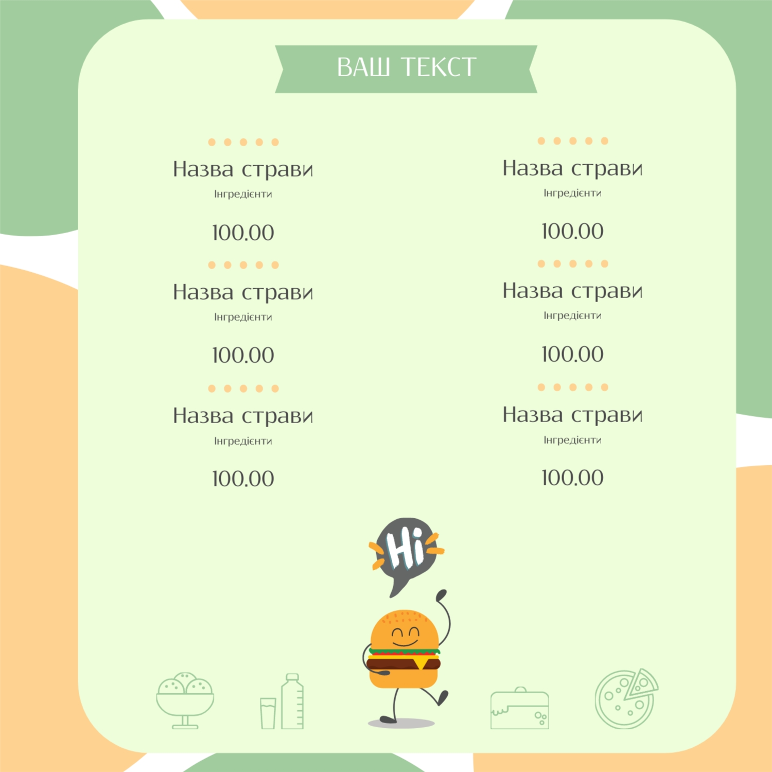 Безкоштовний шаблон меню для дитячого кафе, ресторану швидкого харчування. Створіть макет своїми руками в онлайн-конструкторі меню.
