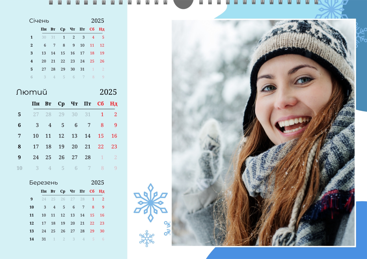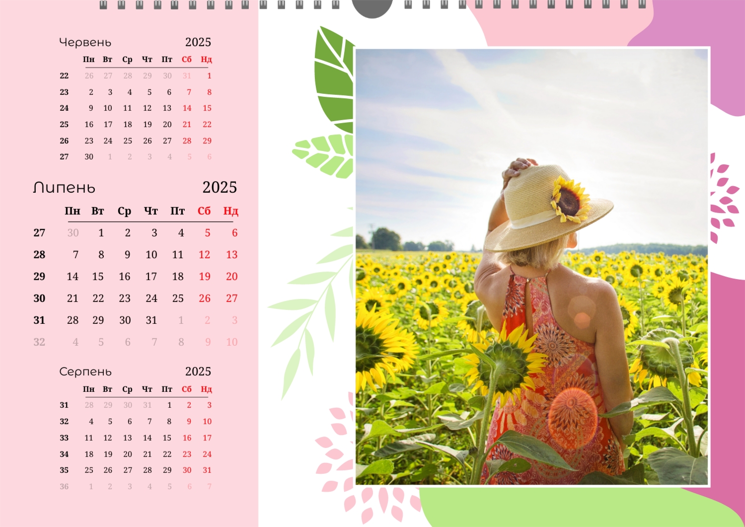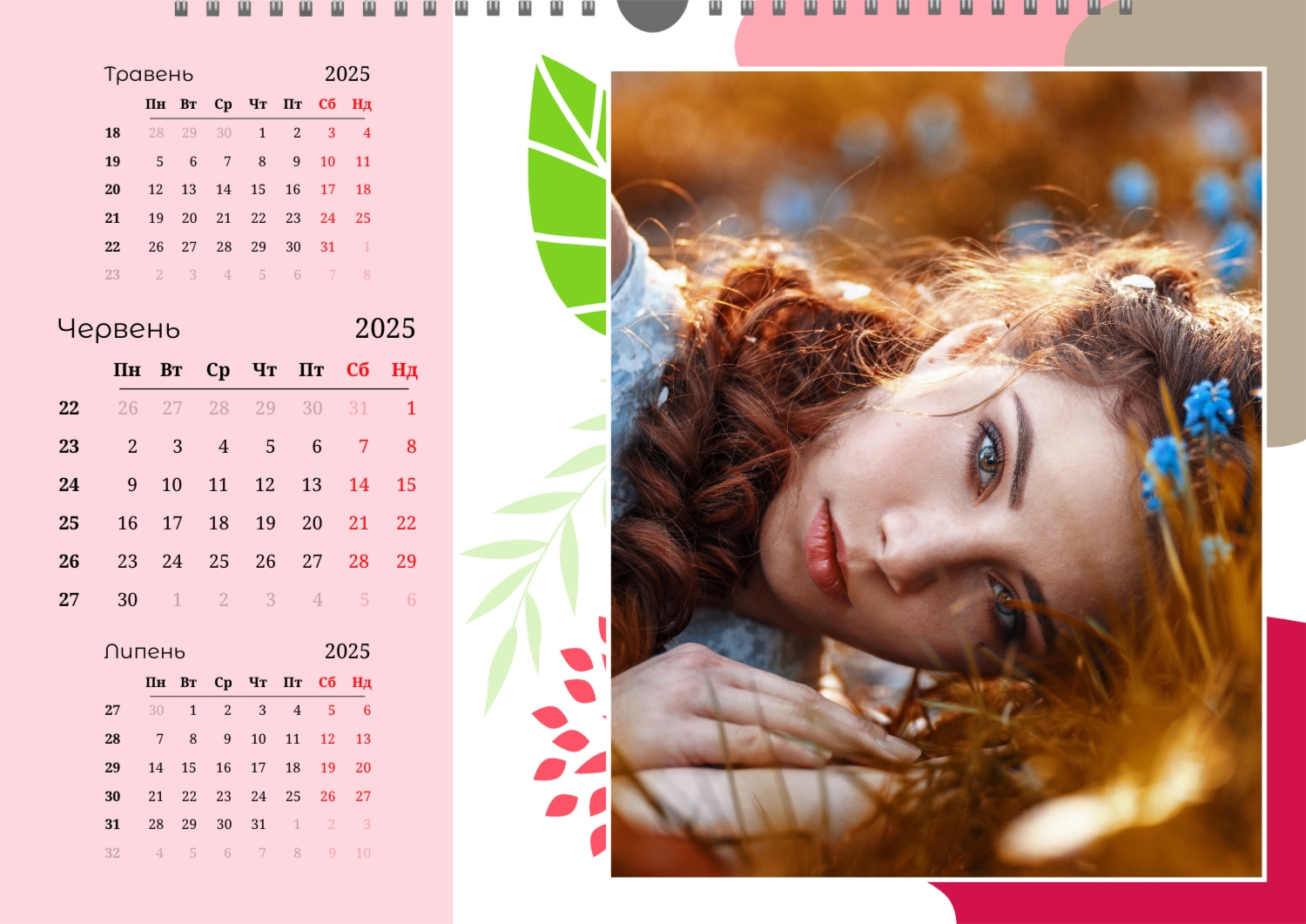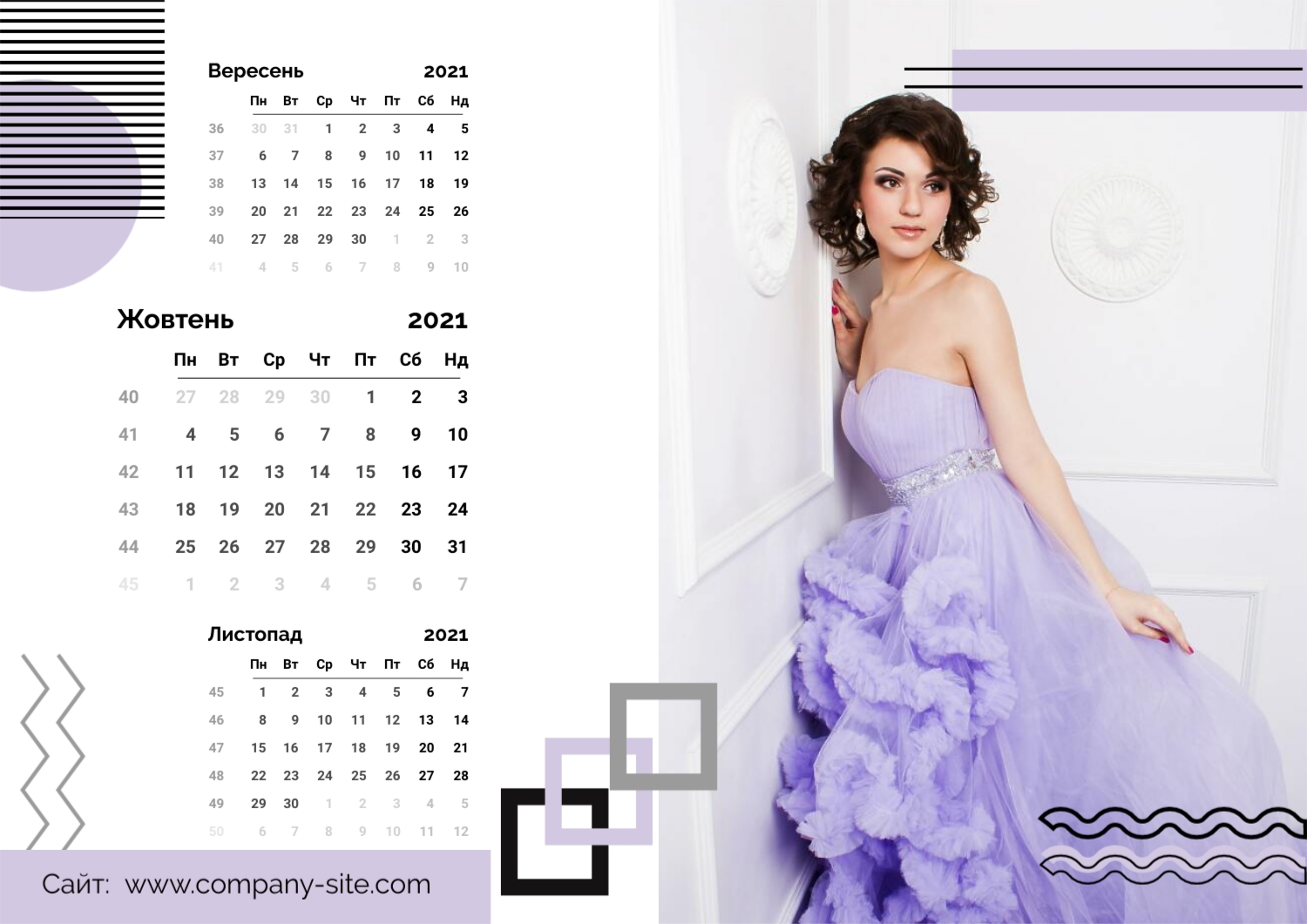 Безкоштовний шаблон настінного календаря-портфоліо для фотостудій, фотографів і фотохудожників, з можливістю редагування його в конструкторі календарів.