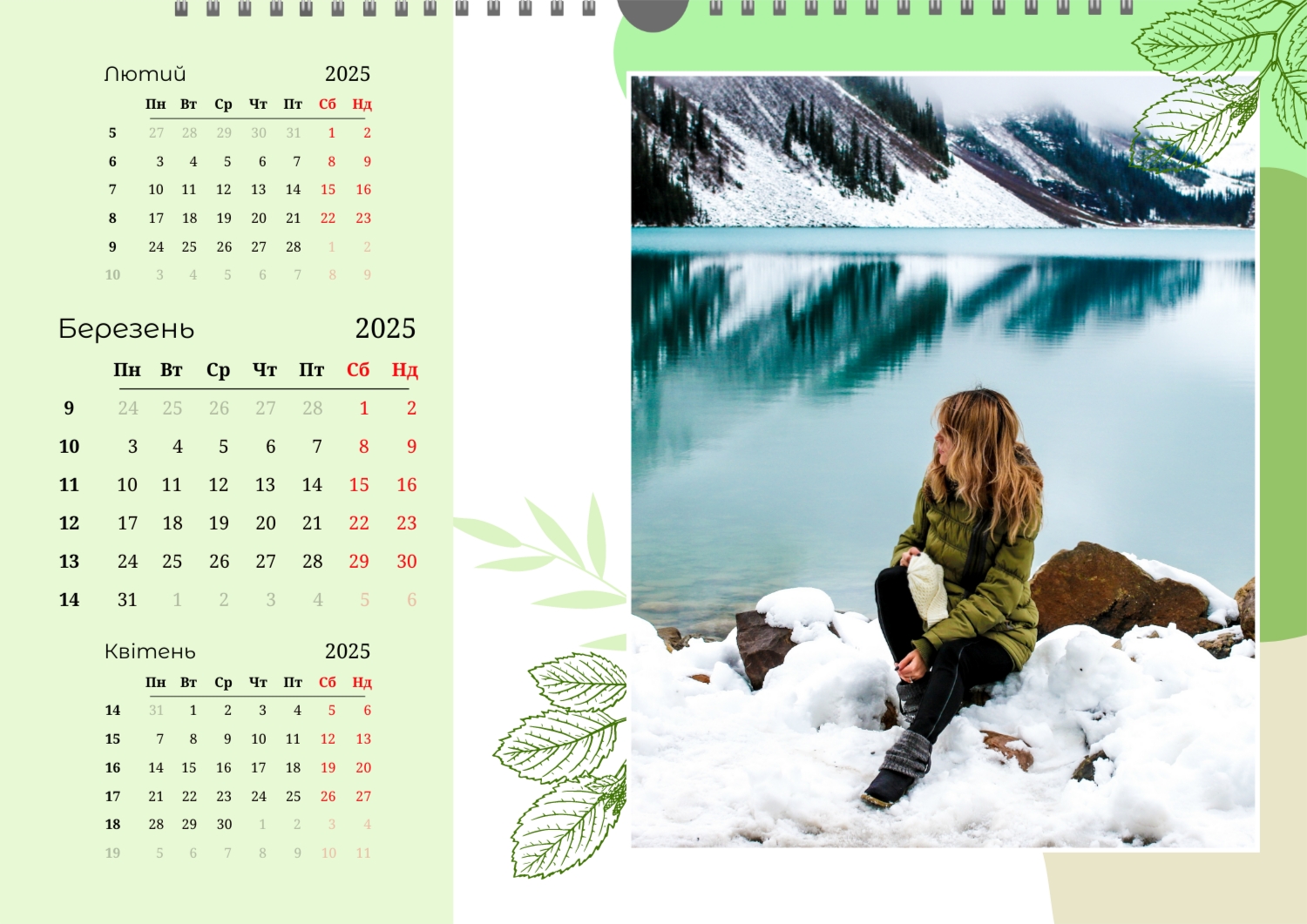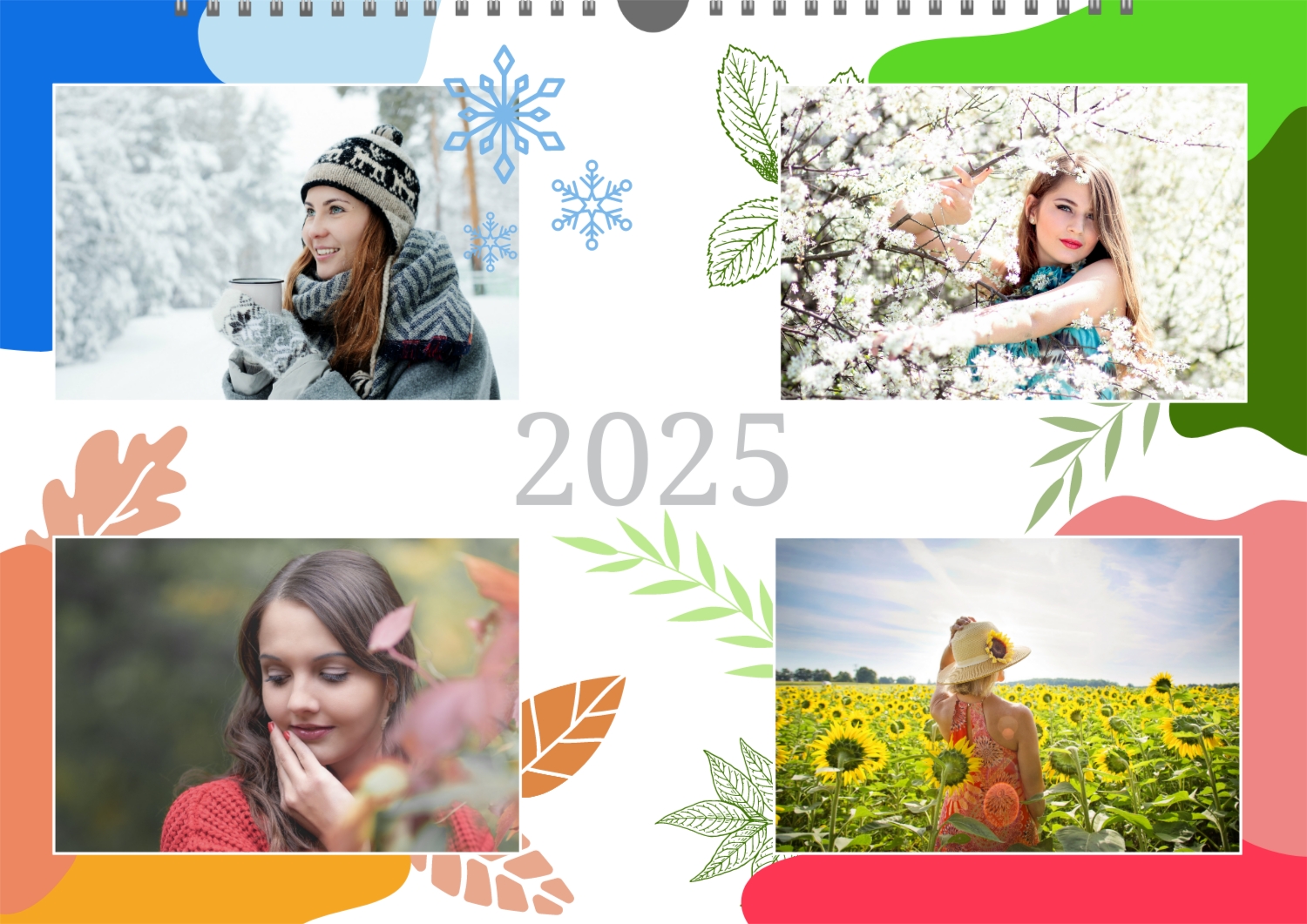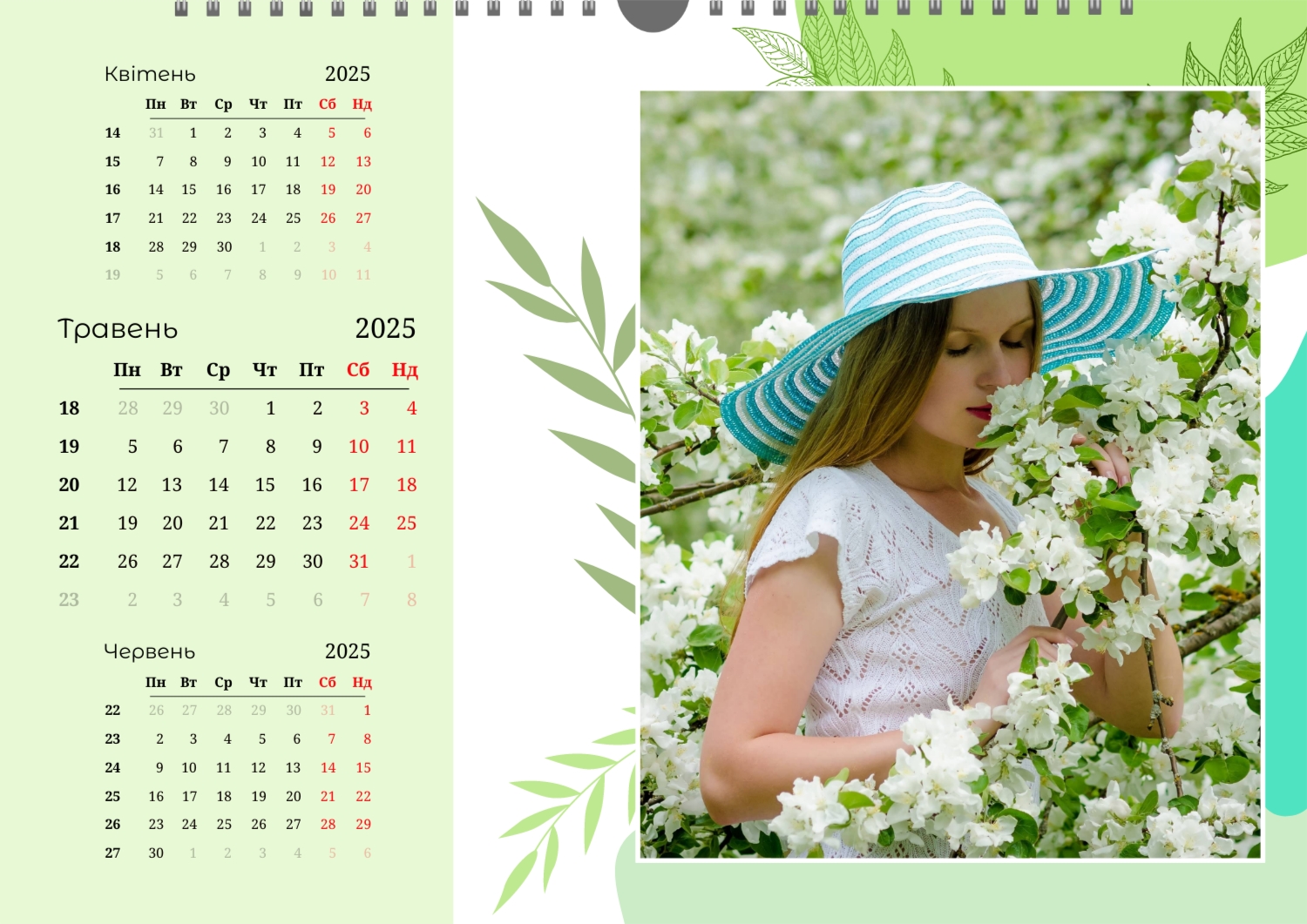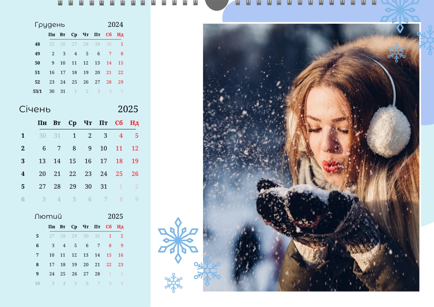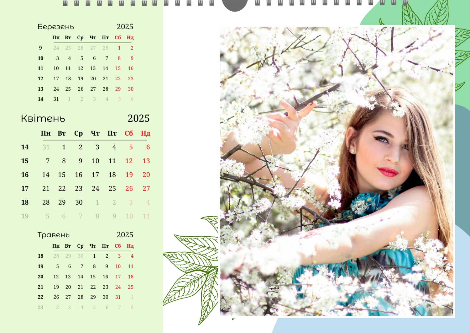 Безкоштовний шаблон настінного календаря-портфоліо для фотостудій, фотографів і фотохудожників, з можливістю редагування його в конструкторі календарів.