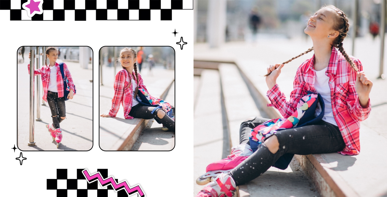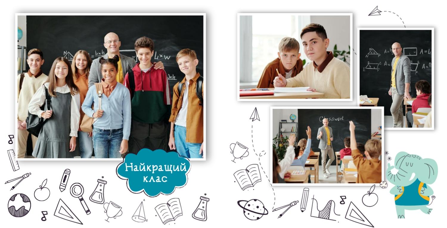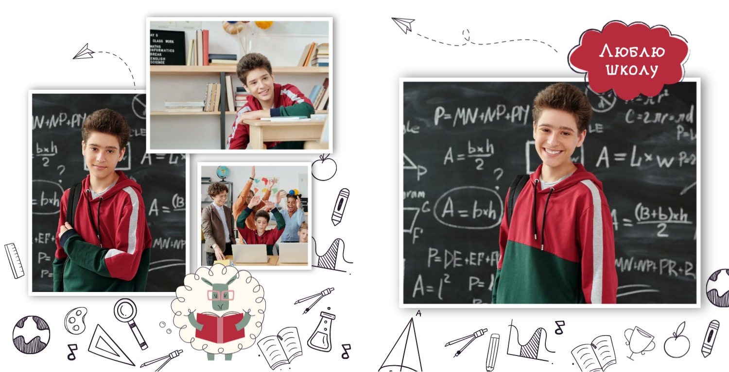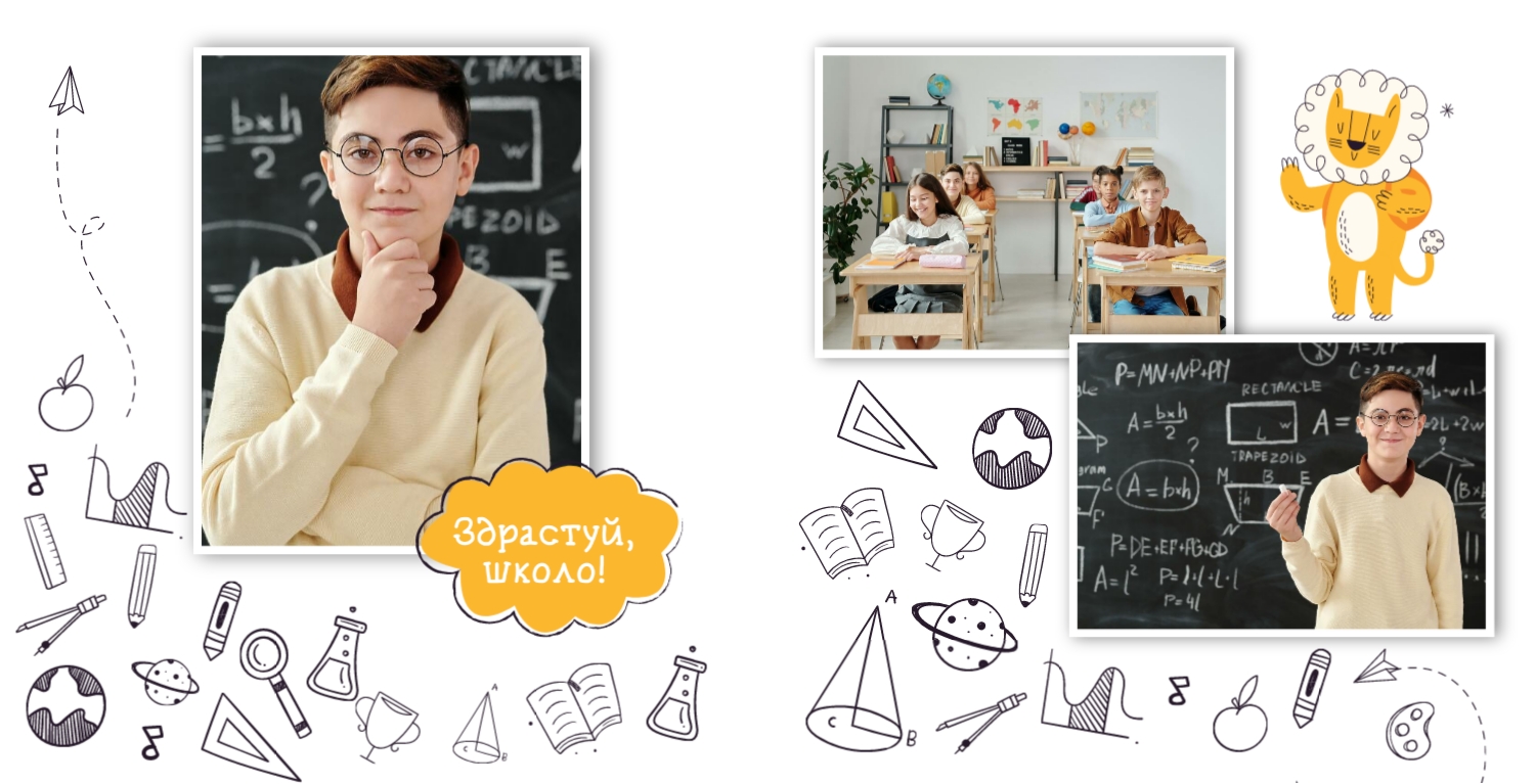 Безкоштовний шаблон шкільної фотокниги квадратний. Створіть макет власноруч в онлайн-конструкторі фотокниг.