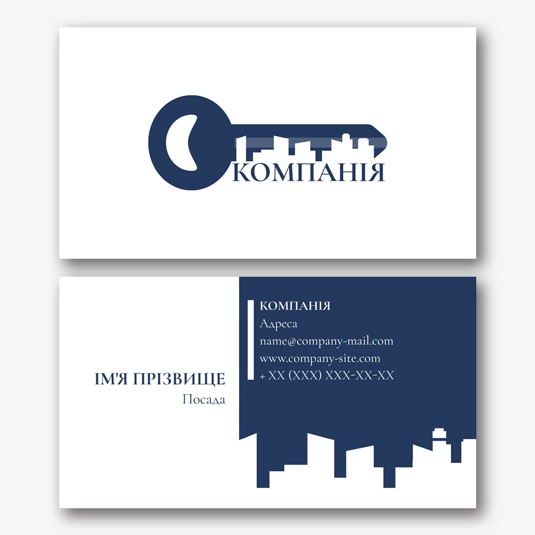 Безкоштовний шаблон візитки забудовника, ріелтора, агентства нерухомості. Створіть макет своїми руками в конструкторі візиток.
