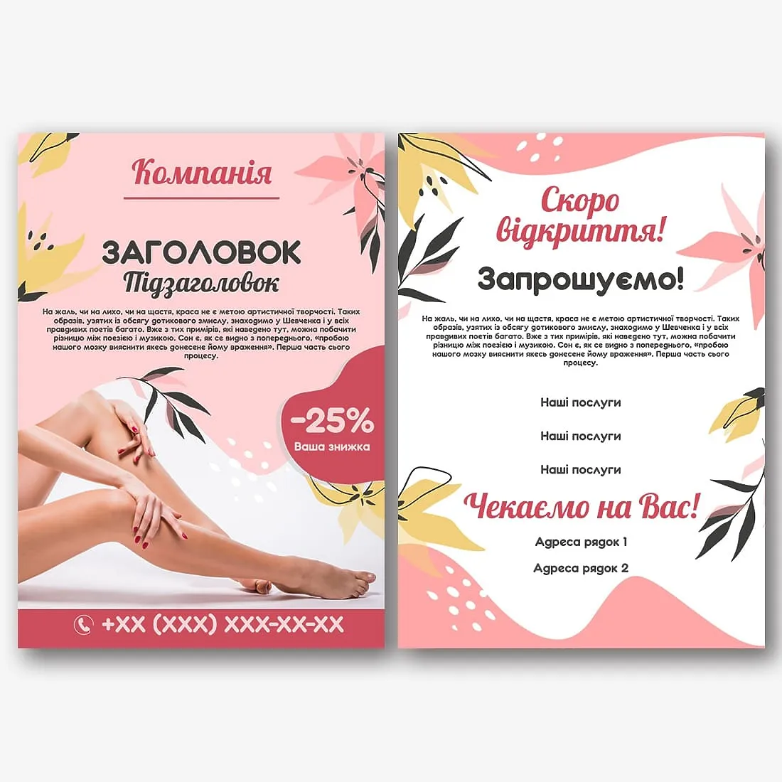 Безкоштовний шаблон листівки для реклами салону краси. Створіть макет листівки власноруч у онлайн-конструкторі листівок.