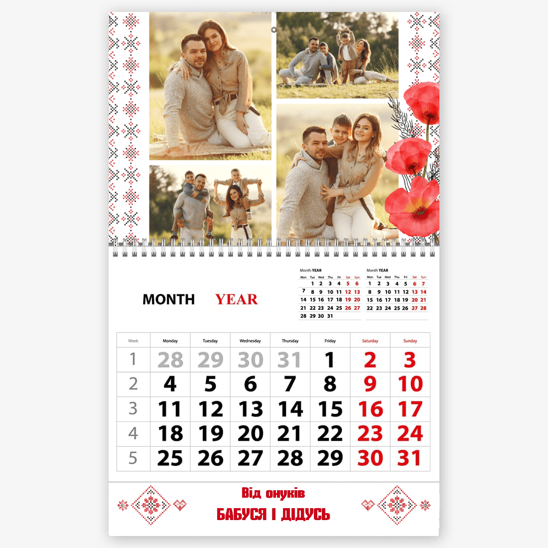 Безкоштовний шаблон квартального портфоліо-календаря для пам'ятних моментів нашої сім'ї. Створіть макет своїми руками в конструкторі календарів.