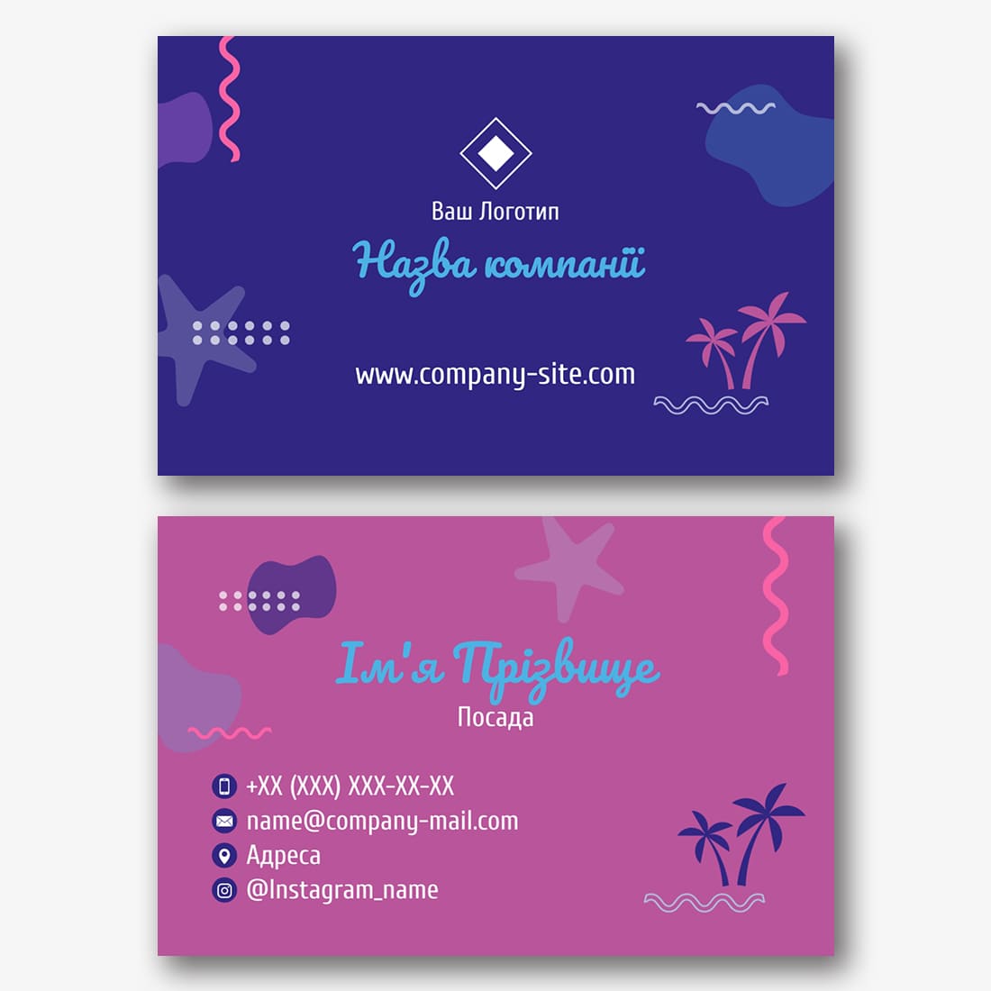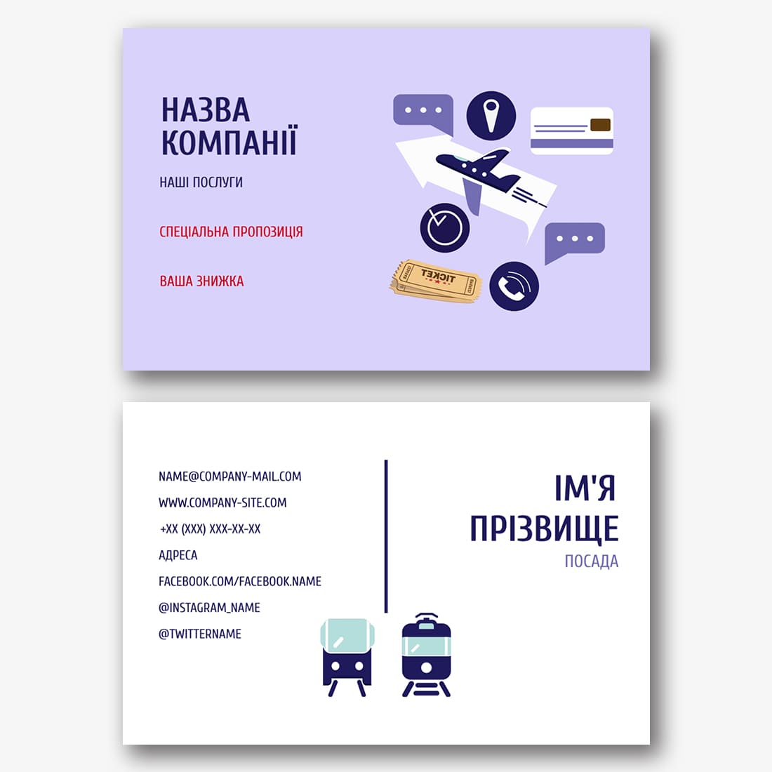 Безкоштовний шаблон візитки турагенції, менеджера з туризму, турагента. Створіть макет своїми руками в конструкторі візиток.