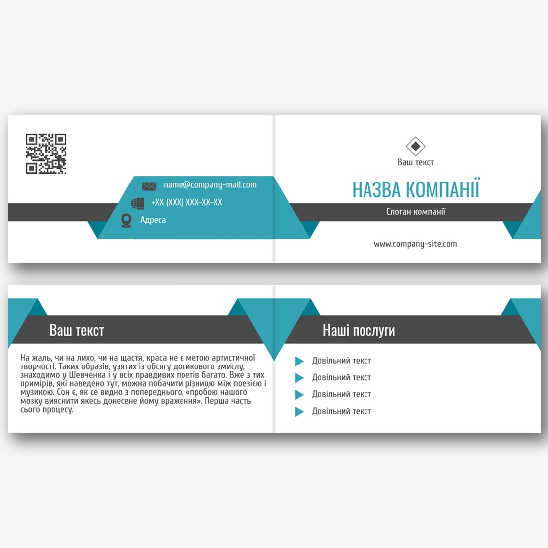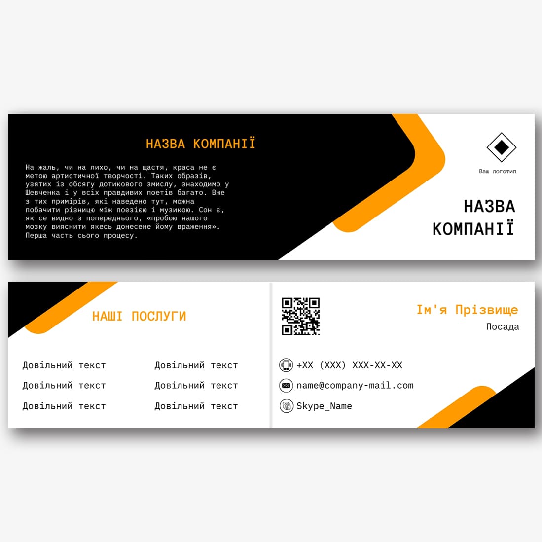 Безкоштовний шаблон стильної, сучасної подвійної візитки для керівників, менеджерів, представників компанії. Створіть макет вручну в онлайн-конструкторі візиток.