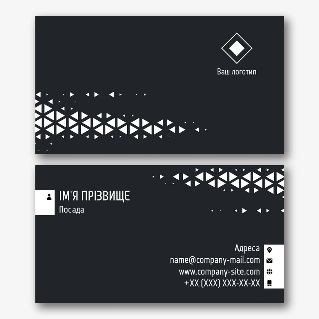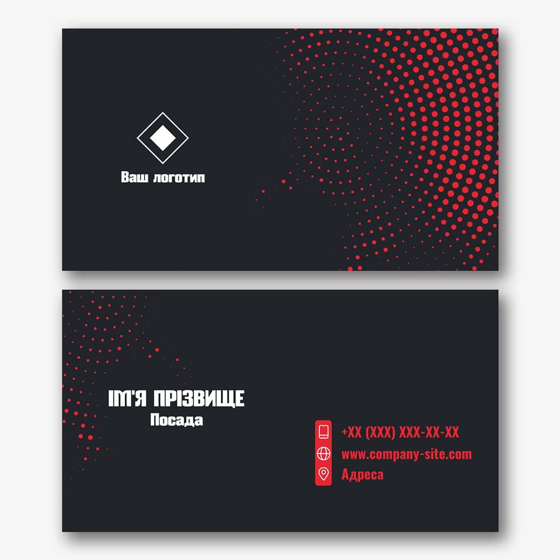 Безкоштовний шаблон яскравої корпоративної візитки на чорному фоні. Створіть макет чорному візитки своїми руками в онлайн-конструкторі візиток.