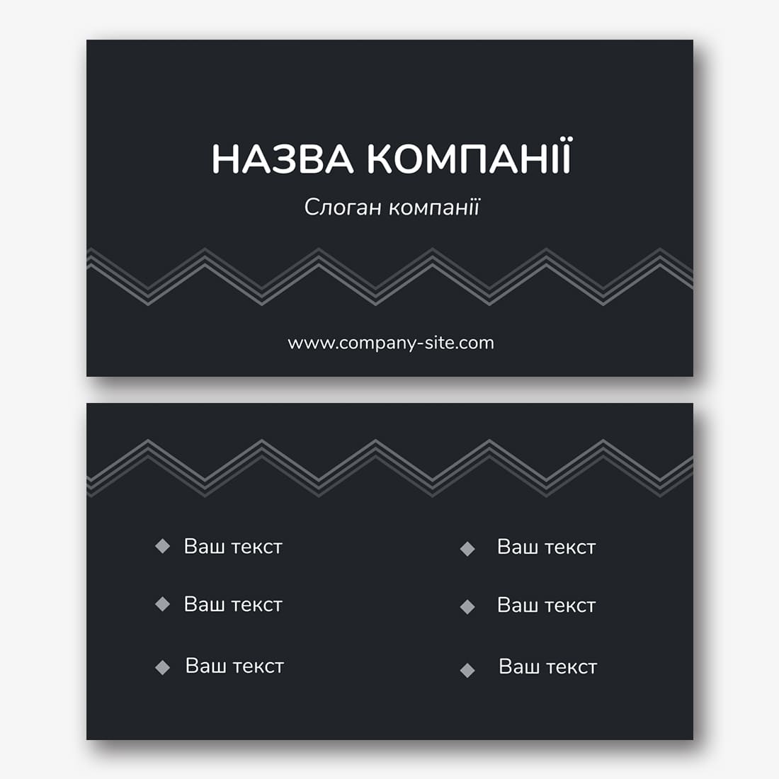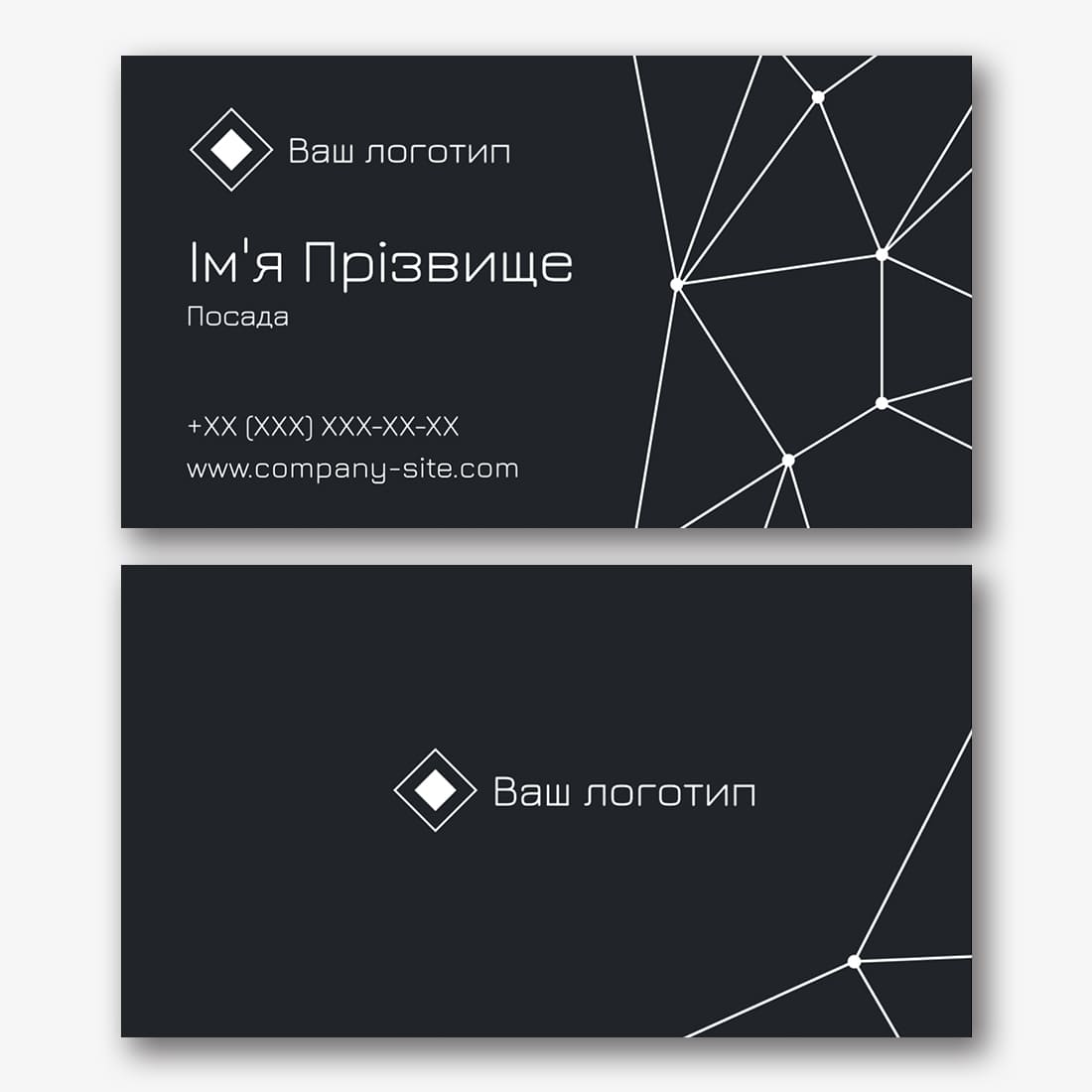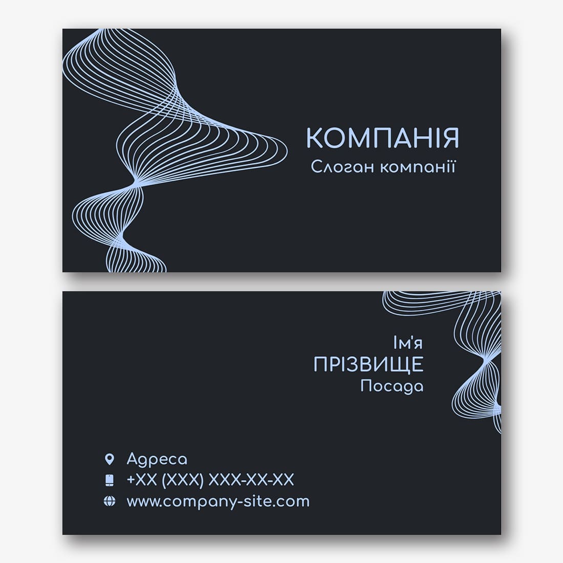 Шаблон абстрактної візитки на чорному фоні для представників компаній, керівників, адміністраторів. Створіть макет візитки своїми руками в онлайн-конструкторі візиток.