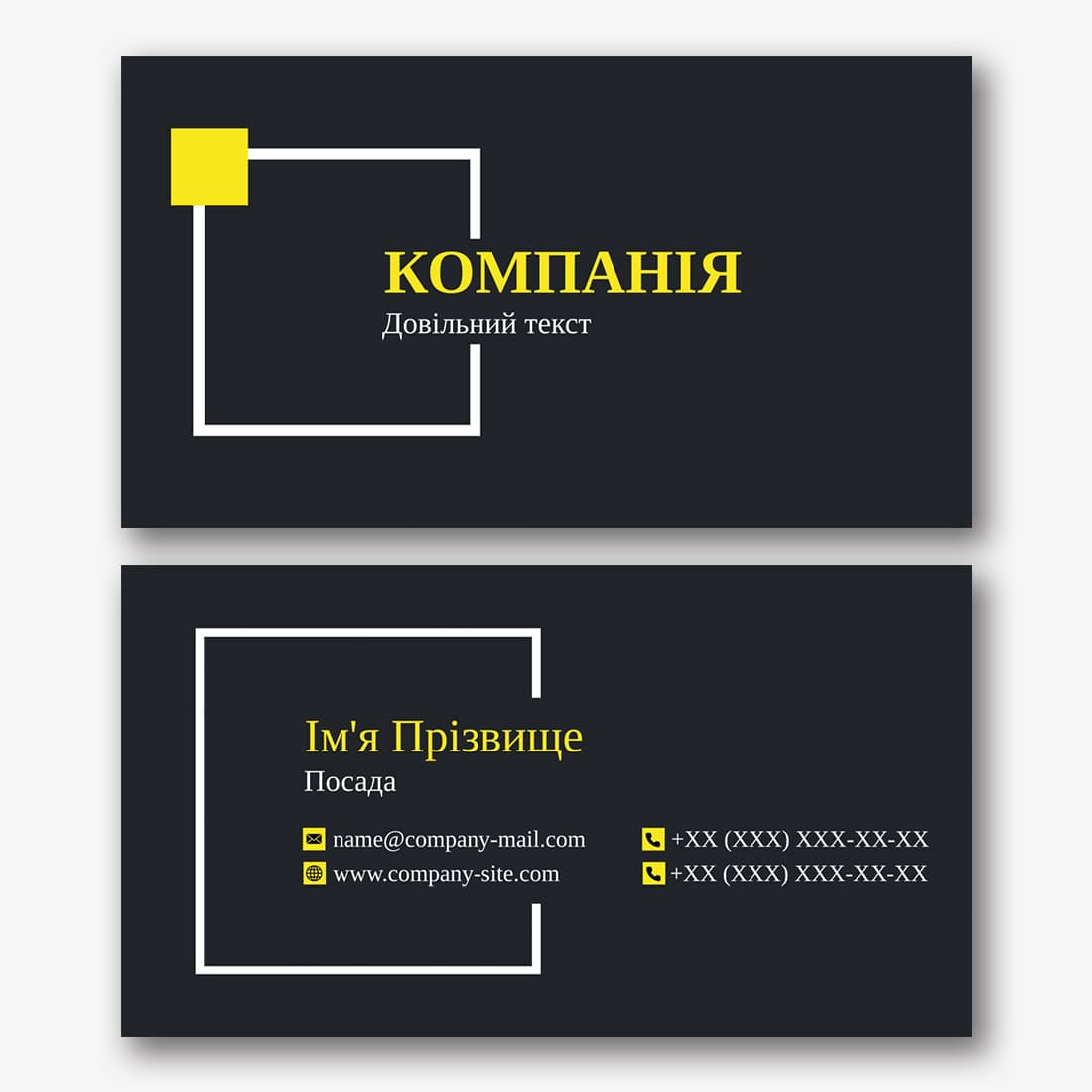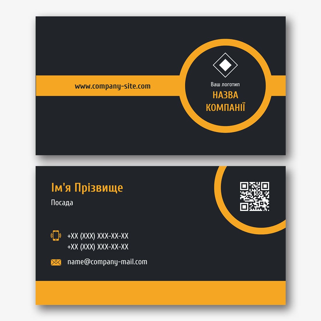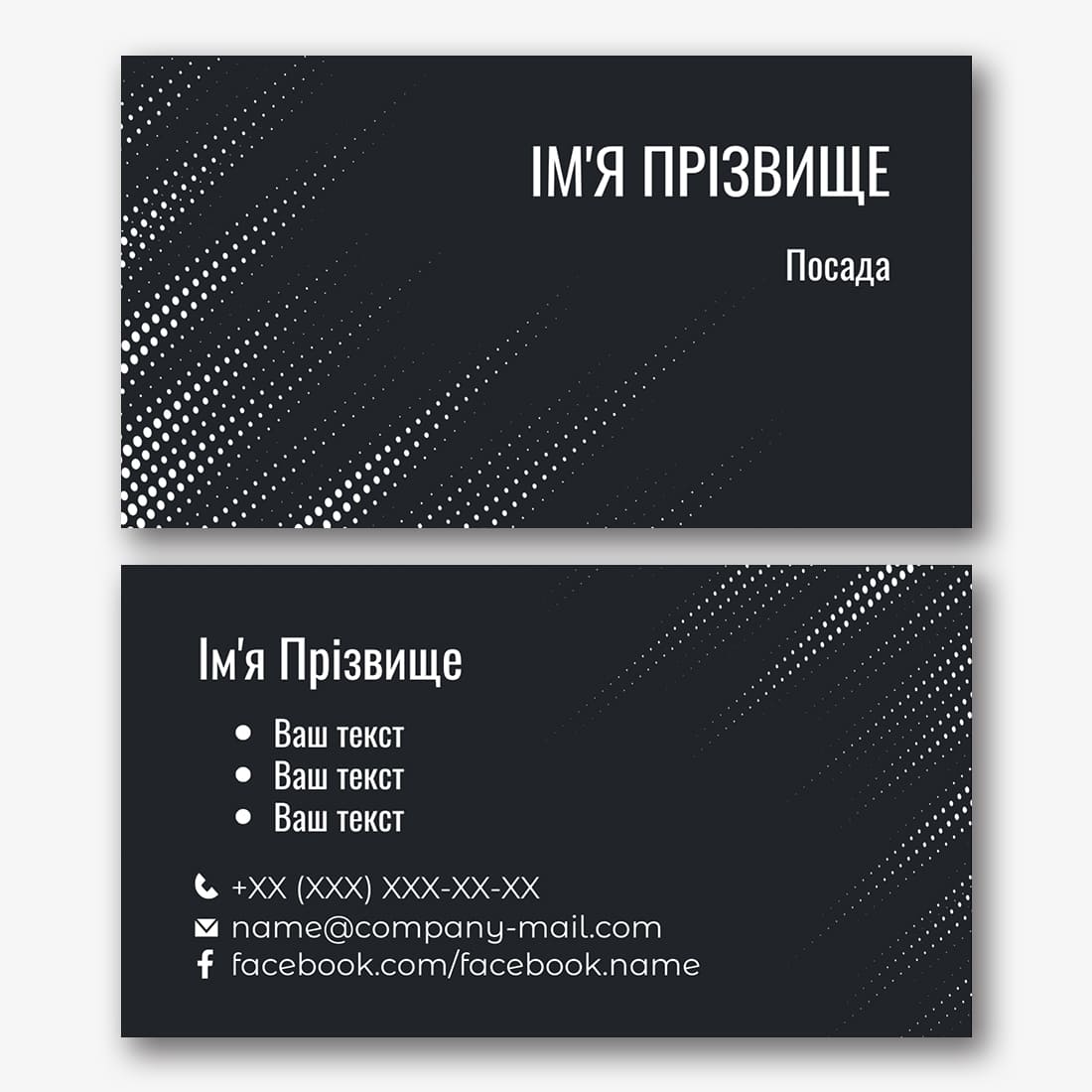 Шаблон абстрактної візитки на чорному фоні для представників компаній, керівників, адміністраторів. Створіть макет візитки своїми руками в онлайн-конструкторі візиток.