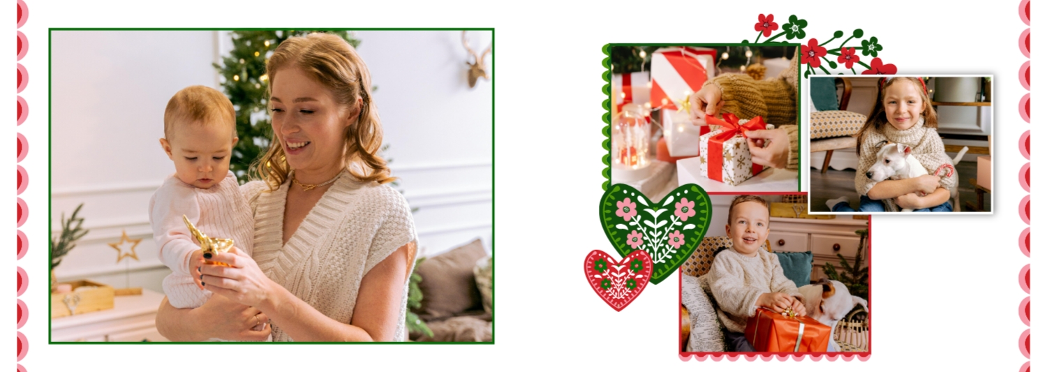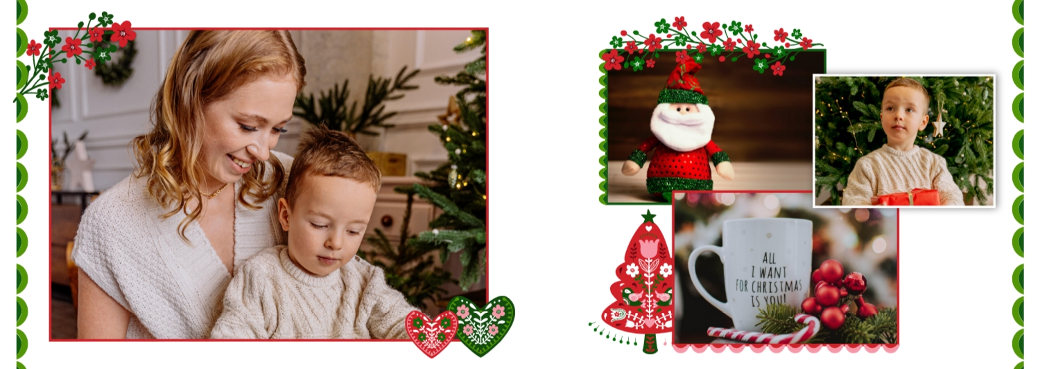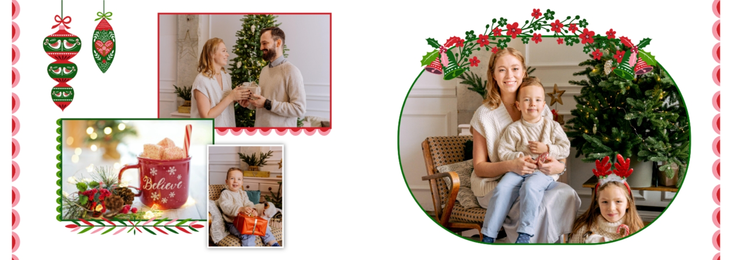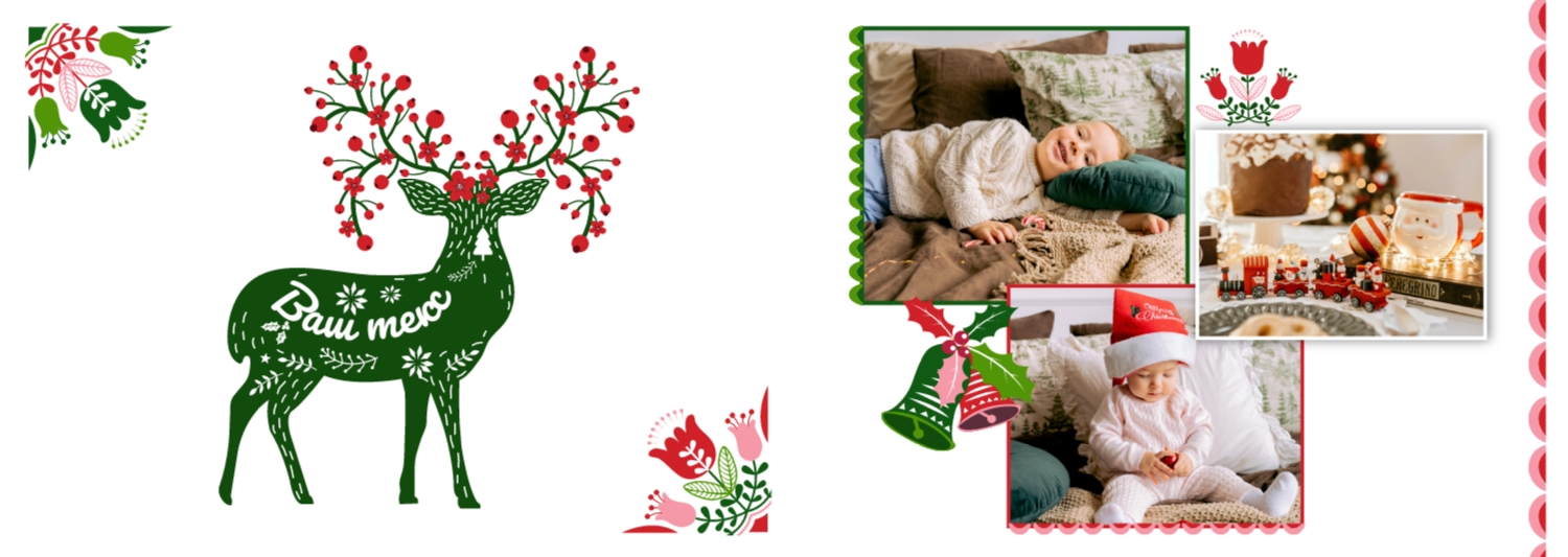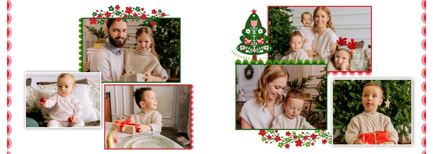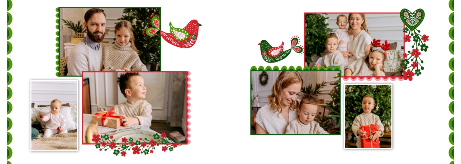 Безкоштовний шаблон родинної фотокниги для гарних спогадів про зимовий відпочинок, канікули, Різдво. Створіть макет великої фотокниги своїми руками у онлайн-конструкторі фотокниг.