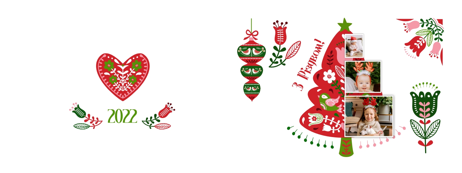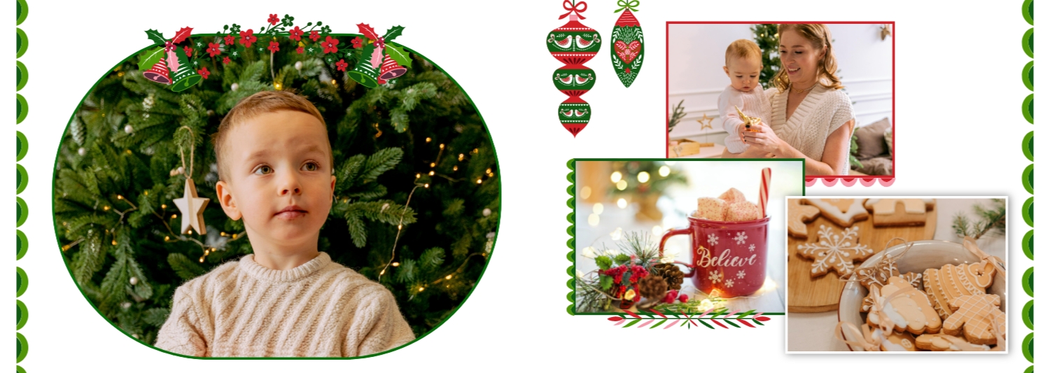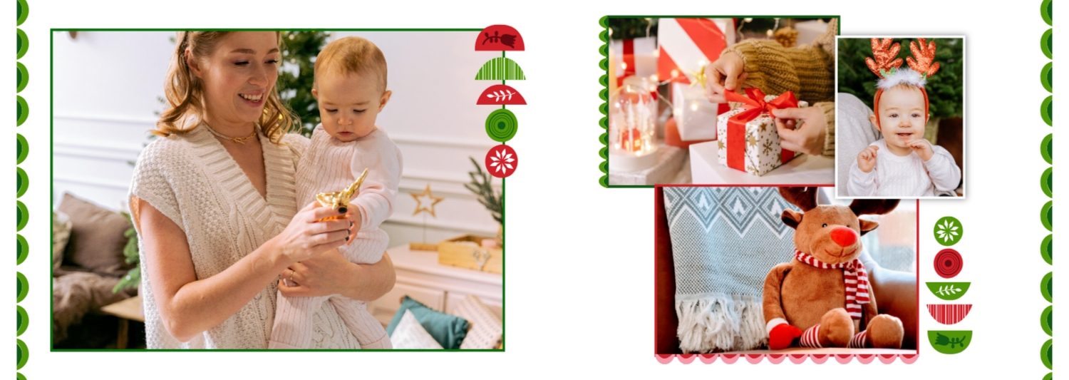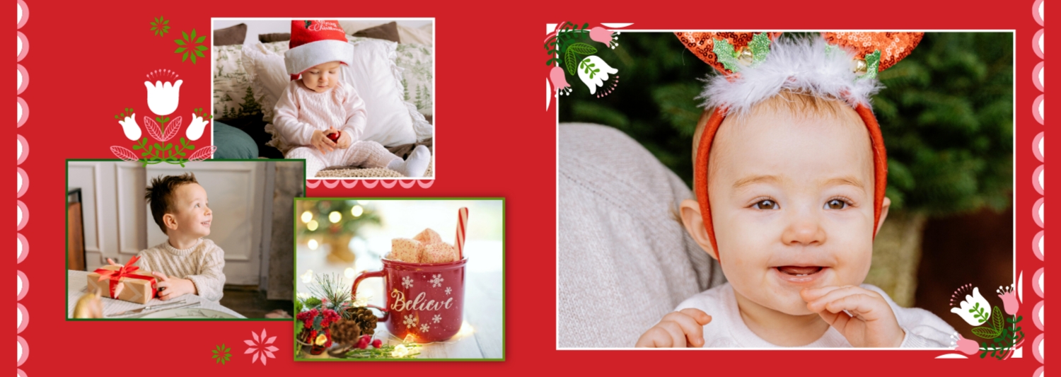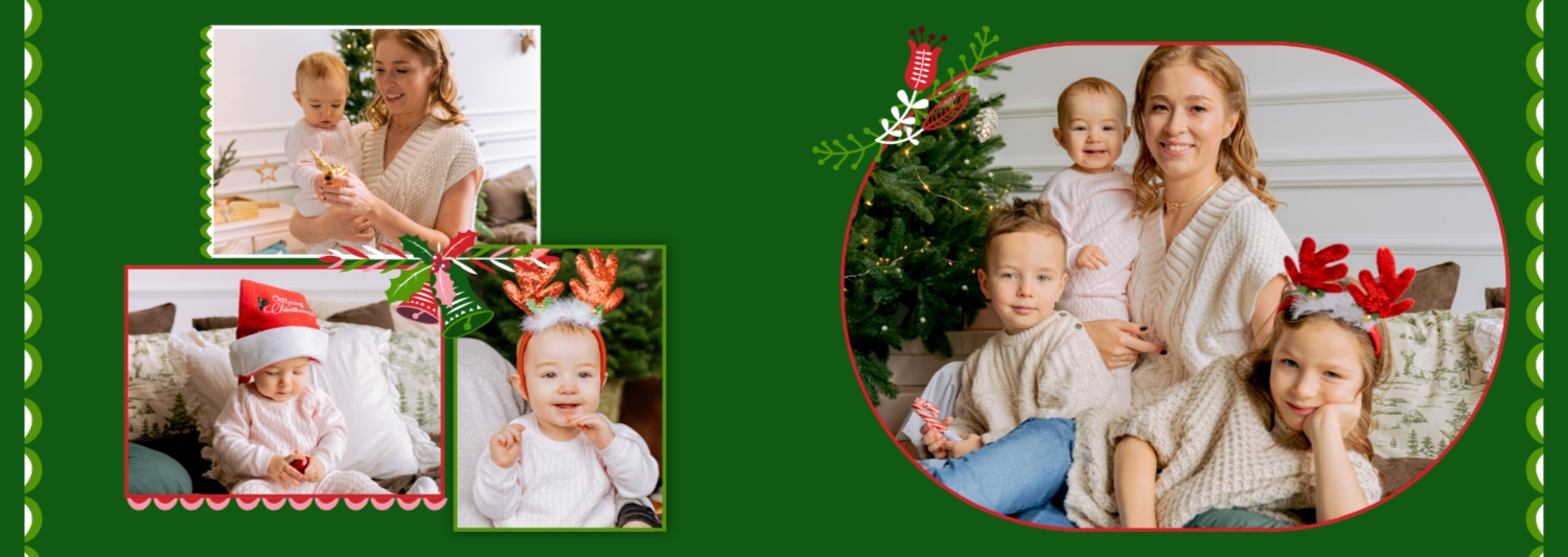 Безкоштовний шаблон родинної фотокниги для гарних спогадів про зимовий відпочинок, канікули, Різдво. Створіть макет великої фотокниги своїми руками у онлайн-конструкторі фотокниг.