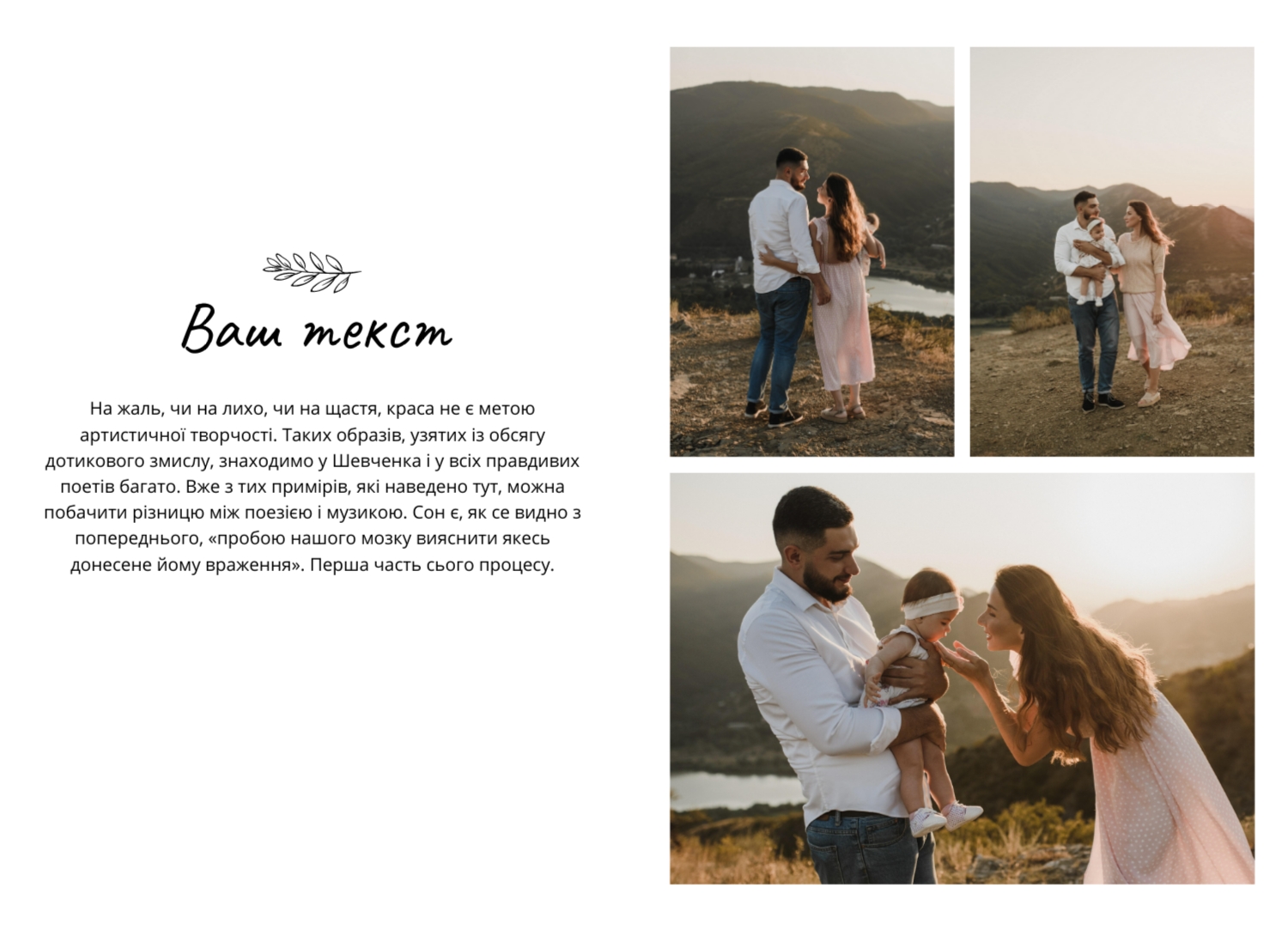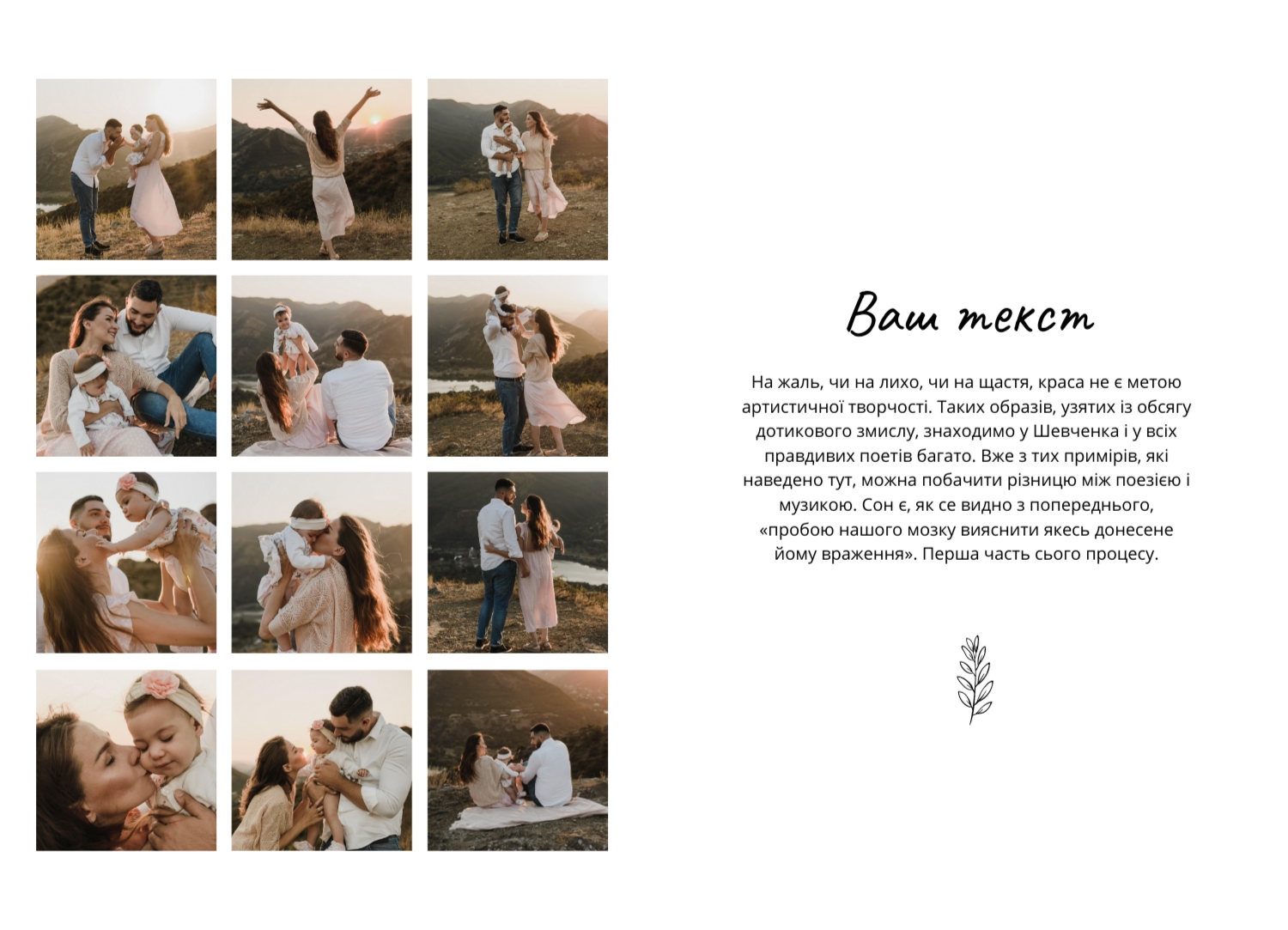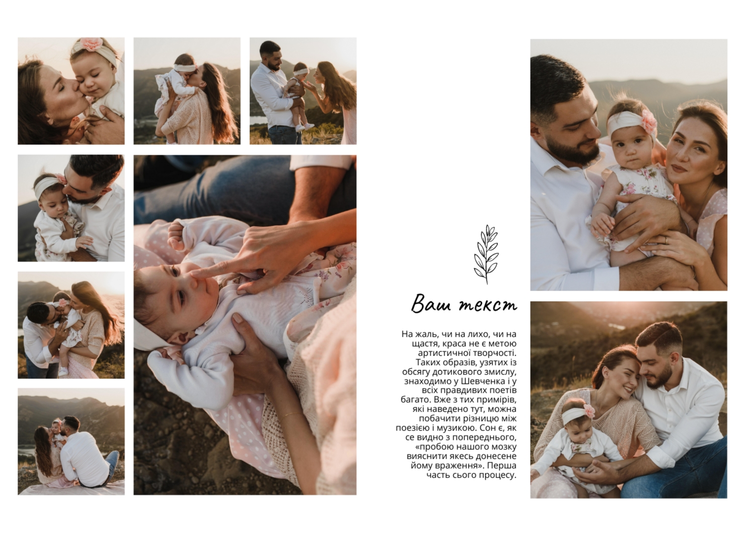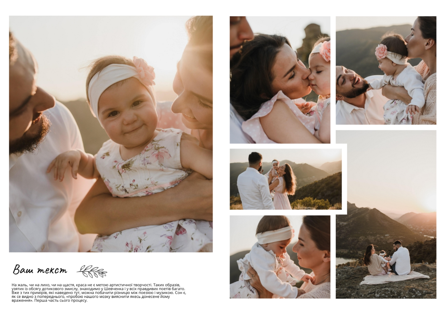 Безкоштовний шаблон фотокниги для родинних фотографій. Створіть макет своїми руками в онлайн-конструкторі фотокниг.