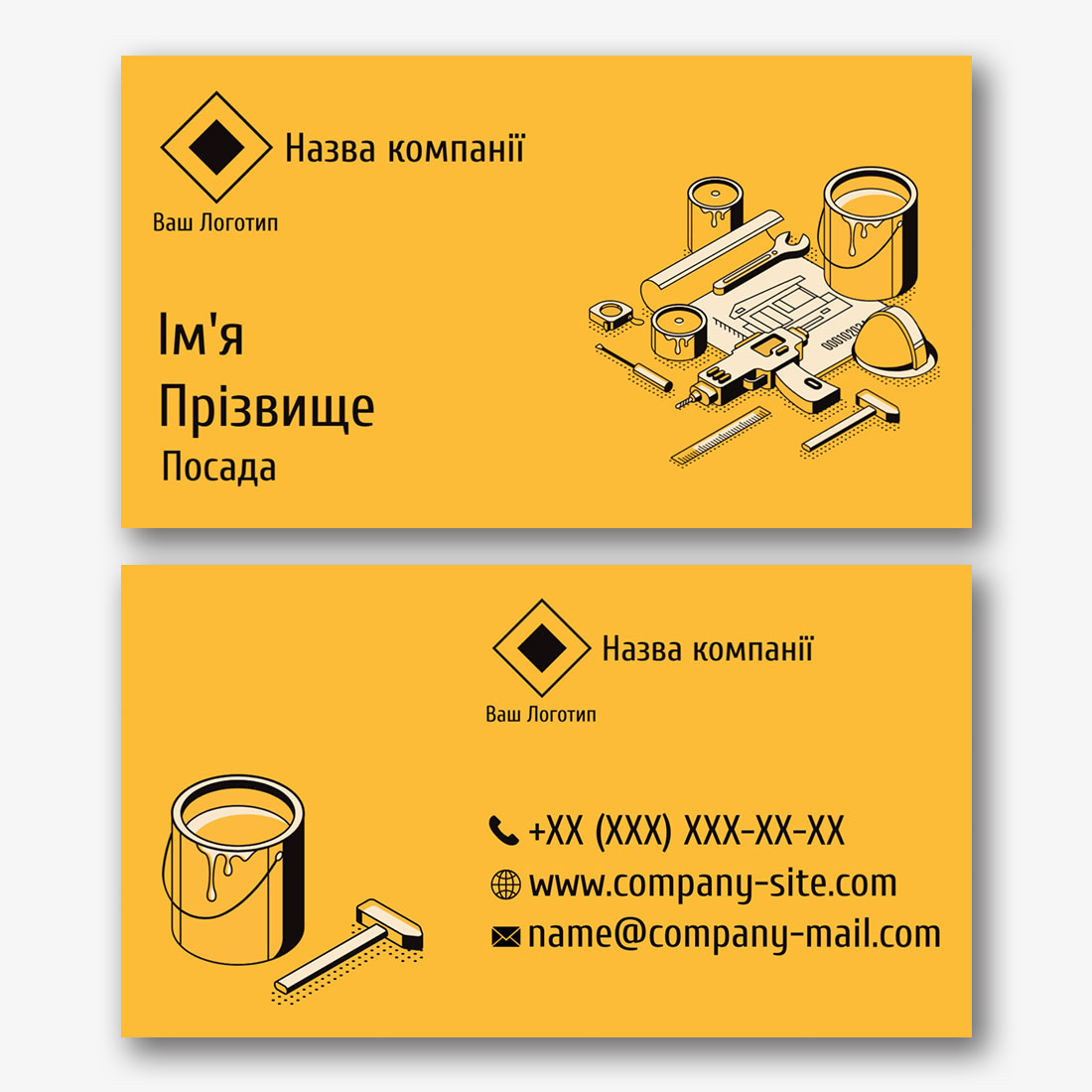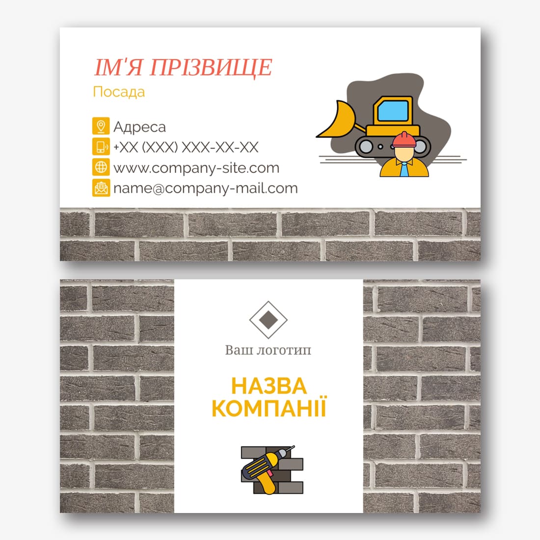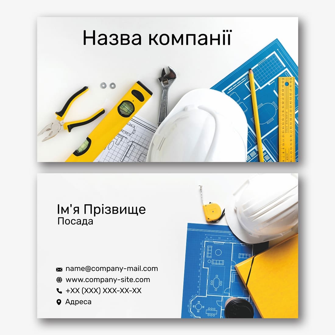 Безкоштовний шаблон візитки покрівельника, будівника чи будівничої фірми. Створіть макет своїми руками у конструкторі візиток.