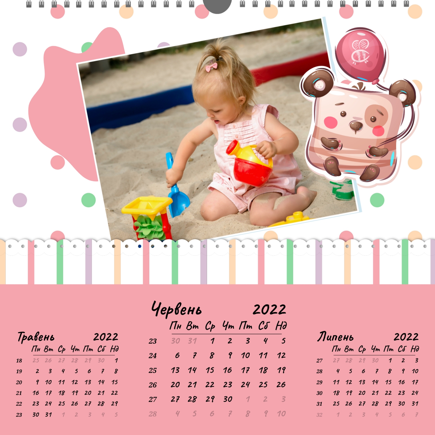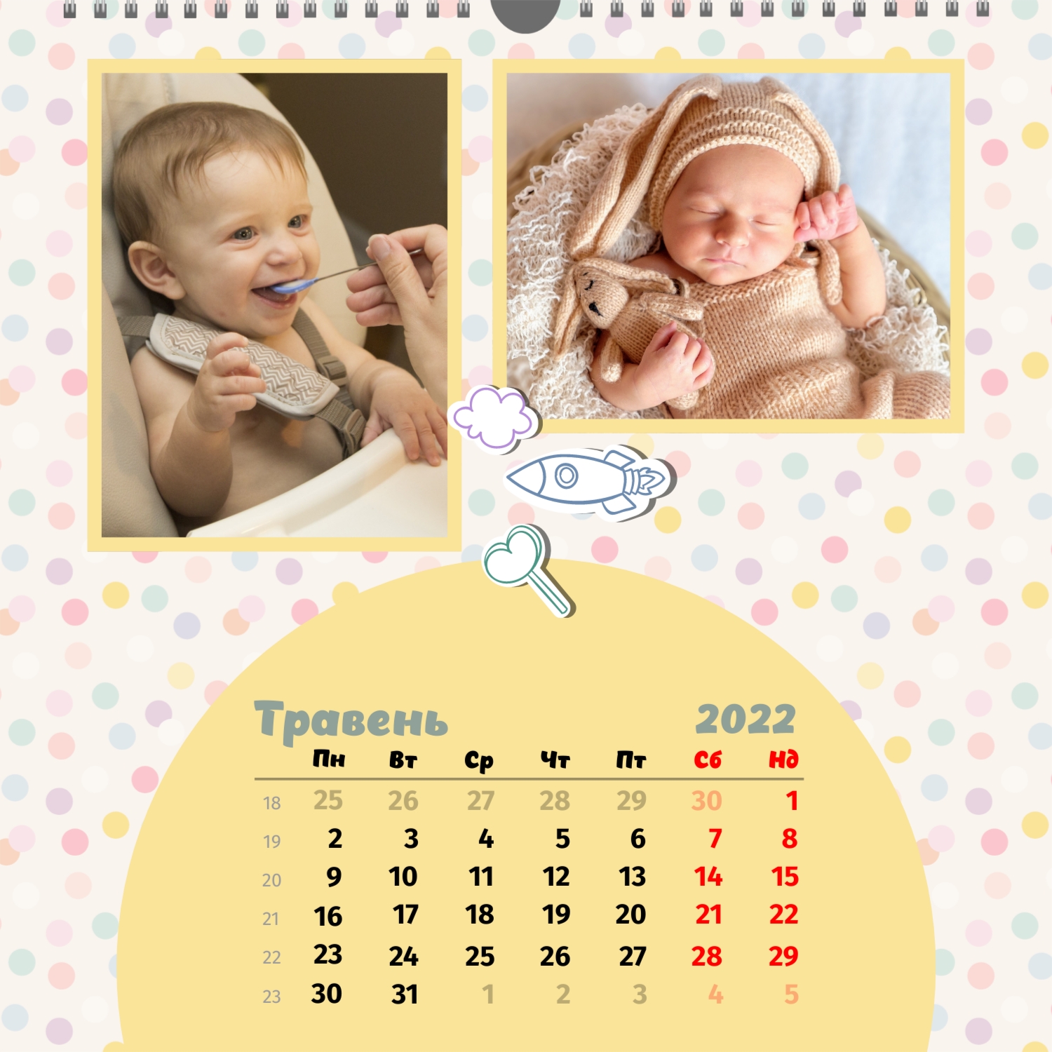 Шаблон календаря з дитячими фотографіями | ID99936